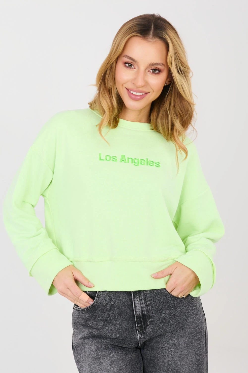 Dámská mikina casual je stylovým návrhem pro ženy, které si cení pohodlí a moderního vzhledu. Model se vyznačuje vyšívaným nápisem na přední straně, který celku dodává módní a výrazný charakter. Vyrobená z příjemné směsi bavlny a polyesteru, zaručuje pohodlí nošení a odolnost materiálu. Mikina má krátkou délku, která skvěle zdůrazňuje postavu a skvěle ladí s džínami s vysokým pasem nebo sukněmi. Dlouhé rukávy a kulatý výstřih zaručují pohodlí a univerzálnost stylizace. Absence zapínání zdůrazňuje její jednoduchý, casualový tvar. Je to ideální volba pro každodenní, volné sestavy, pro procházku, setkání s přáteli nebo aktivní den mimo domov.