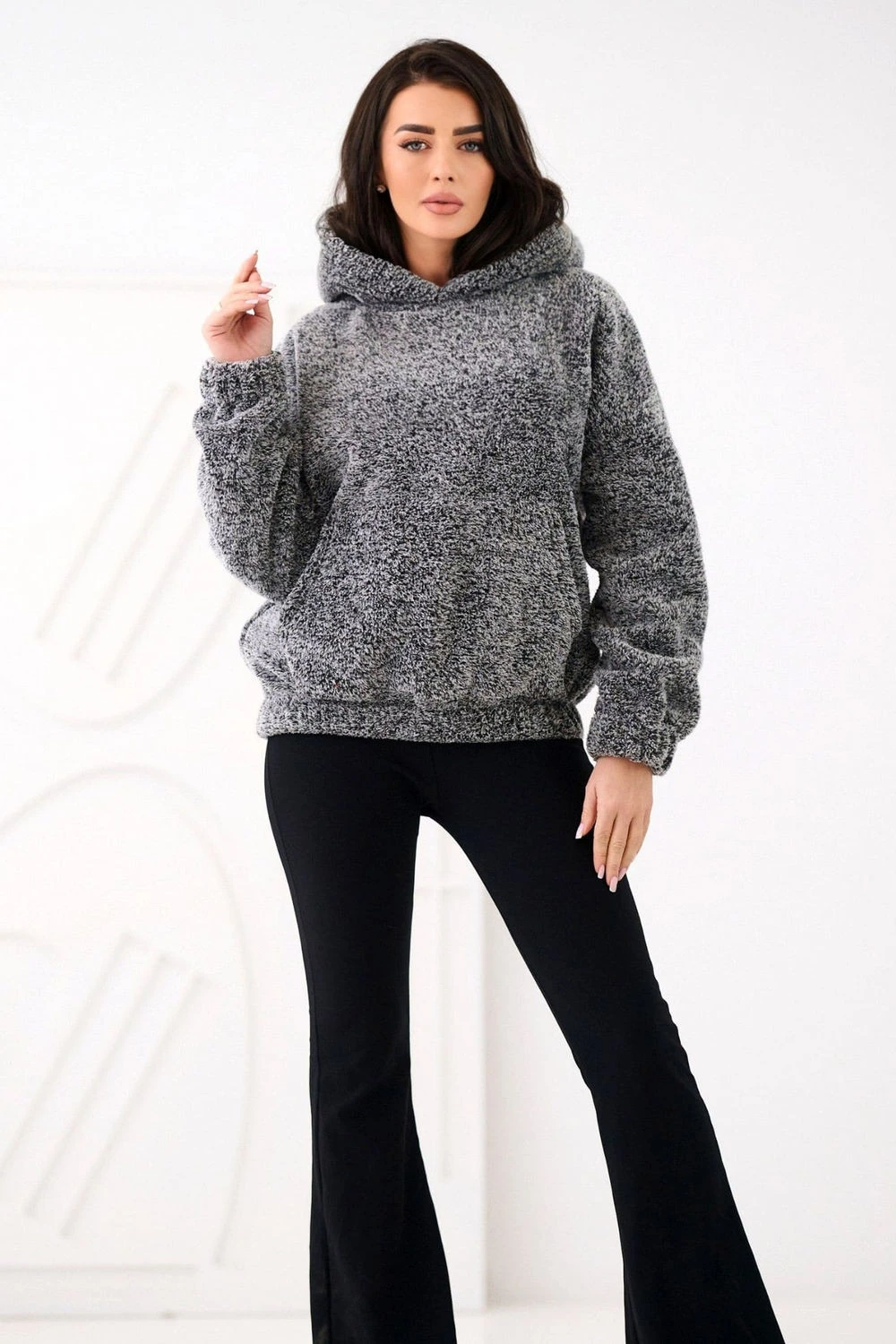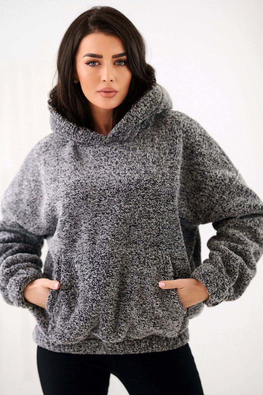Casualová dámská mikina s roztomilým motivem medvídka je ideální volbou pro každodenní stylizace. Vyrobená z příjemného na dotek materiálu s dominancí polyesteru, poskytuje pohodlí a volnost pohybu. Model standardní délky s dlouhým rukávem a praktickou kapucí skvěle poslouží v chladnějších dnech. Mikina nemá zapínání, co jí dodává sportovní a pohodlný charakter. Na přední straně je funkční kapsa typu klokánek, ideální na drobnosti nebo zahřátí rukou. Hladký vzor umožní mikině snadno ladit s mnoha casualovými outfitmi, ať už s džíny nebo legíny.