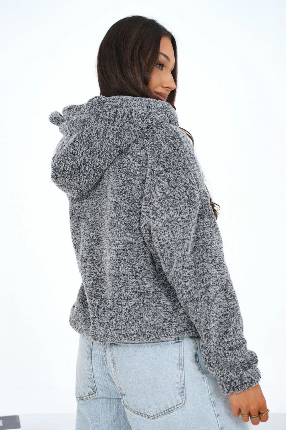 Casualová dámská mikina vyrobená z měkkého materiálu typu "medvěd" je ideální volbou na každodenní nošení pro milovnice pohodlí a roztomilého stylu. Vyrobená z příjemného polyesteru, poskytuje pohodlí při nošení a příjemné zahřátí v chladnějších dnech. Model s standardní délkou a dlouhým rukávem je vybaven kapucí s ozdobnými ušima, která dává mikině originální a dívčí charakter. Mikina se zapíná na zip, co usnadňuje oblékání a umožňuje regulovat přizpůsobení. Hladký vzor činí model univerzálním a snadno kombinovatelným, a praktické kapsy zvyšují funkcionalitu. Skvěle se hodí k každodenním, ležérním outfitům.