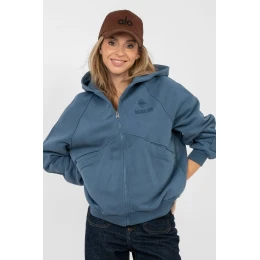 Dámská mikina v casual stylu je pohodlnou a univerzální nabídkou na každý den. Vyrobená z vysoce kvalitní směsi bavlny a polyesteru poskytuje pohodlí nošení, měkkost a trvanlivost. Hladký vzor dává mikině klasický, nadčasový charakter a snadno se kombinuje s různými stylizacemi. Model standardní délky s dlouhým rukávem a praktickou kapucí se skvěle hodí pro každodenní aktivity. Zapínání na zip usnadňuje oblékání a nastavení, a kapsy na zip zvyšují funkcionalitu. Jemná výšivka umístěná na přední straně v oblasti hrudníku na levé straně dodává celku stylový akcent a zdůrazňuje výjimečný charakter mikiny. Ideální pro městské, každodenní outfit.