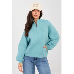 Elegantní dámská mikina standardní délky je ideální volbou pro ženy, které ocení pohodlí a minimalistický, ležérní styl. Hladký střih dělá model univerzálním a snadno kombinovatelným s ostatními kousky šatníku, skvěle se hodí do každodenních outfitů. Mikina má dlouhý rukáv a praktický stojánek, který jí dodává moderní charakter a zajišťuje dodatečný komfort v chladnějších dnech. Zapínání na zip do poloviny délky usnadňuje oblékání a umožňuje regulovat hloubku výstřihu podle vlastních preferencí. Model je vybaven funkčními kapsami vsunutými vpředu, které zvyšují pohodlí při nošení. Originálním akcentem je ozdobný vyšívání na rukávu a vpředu v oblasti hrudníku na levé straně, které dodává celku decentní eleganci a jedinečný charakter. Mikina je vyrobena z vysoce kvalitní směsi bavlny s přídavkem elastanu, díky čemuž je měkká, elastická a příjemná na dotek, zároveň dobře padne na postavu. Je to skvělá volba na procházku, nákupy nebo do práce v pohodlném stylu.