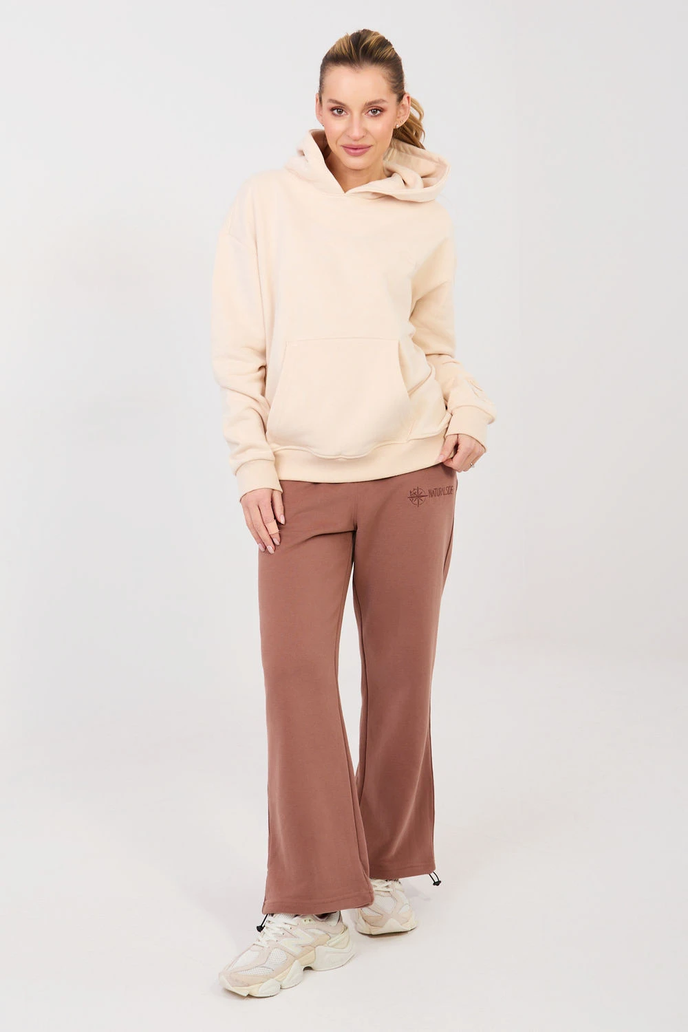 Pohodlná dámská mikina s kapucí je ideální volbou pro ženy, které ocení pohodlí a volný, ležérní styl. Hladký střih dělá model univerzálním a snadno kombinovatelným s džíny, legíny nebo tepláky. Mikina má standardní délku a dlouhý rukáv, co zaručuje pohodlí a skvělé padnutí do každodenních outfitů. Praktická kapuce jí dodává sportovní charakter a bude se hodit v chladnějších dnech. Model se obléká přes hlavu bez zapínání, co zdůrazňuje jeho volný styl. Funkčním prvkem je kapsa typu klokánek vpředu, ideální na drobnosti nebo pro zahřátí rukou. Pozornost přitahuje také ozdobný vyšívaný motiv na rukávu a vpředu vlevo na úrovni hrudníku, který mikině dodává decentní a ženský akcent. Vyrobená z vysokokvalitní směsi bavlny a polyesteru, mikina je měkká, příjemná na dotek a odolná, díky čemuž se skvěle osvědčí v každodenním používání. Je to must-have kousek v šatníku každé milovnice pohodlných a stylových řešení.