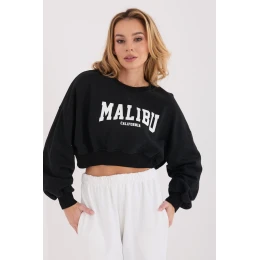 Dámská mikina ve stylu casual je skvělou volbou pro každodenní nošení pro ženy, které ocení pohodlí a stylový vzhled. Kratší střih jí dodává moderní charakter a skvěle ladí s kalhotami nebo sukněmi s vysokým pasem. Model má dlouhý rukáv a klasický, kulatý výstřih, co zajišťuje pohodlí při nošení a univerzálnost v stylingu. Bez zapínání je mikina praktická a snadno se nasazuje. Na přední straně jsou ozdobné nápisy, které dodávají celku výrazný módní akcent a zdůrazňují uvolněný charakter modelu. Mikina je vyrobena z vysoce kvalitní směsi bavlny a elastanu, díky čemuž je materiál měkký, elastický a příjemný na pokožku. Je to ideální volba pro každodenní, casualové outfit, pohodlná, stylová a nadčasová.