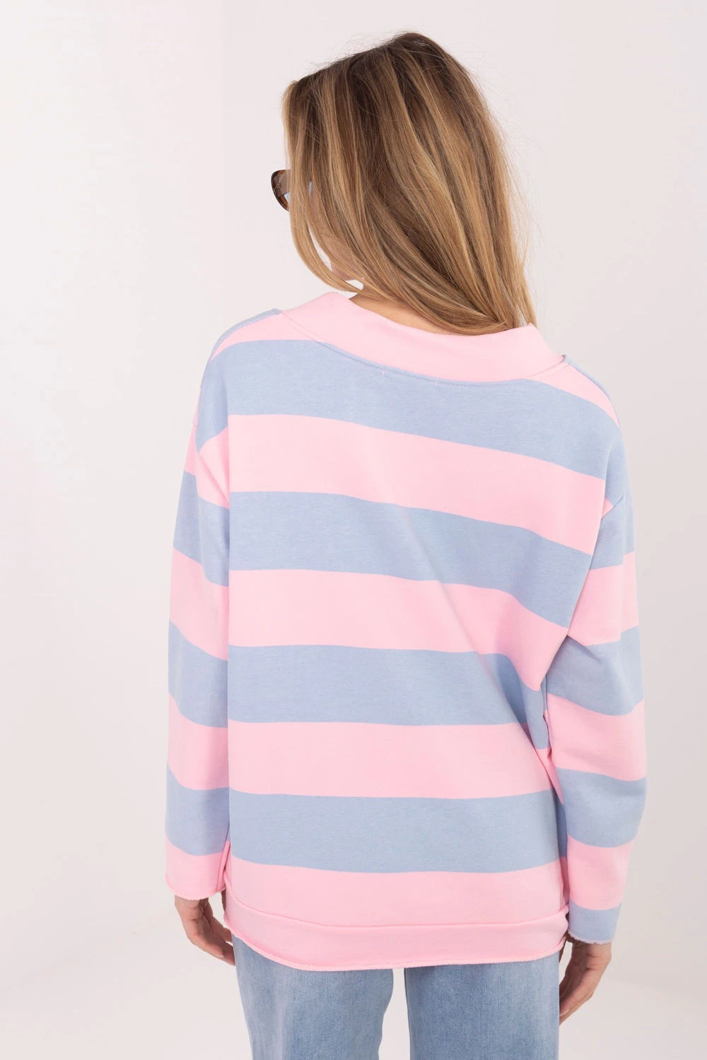 Stylová dámská mikina s ležérním charakterem je skvělým návrhem na každý den. Hodí se jak do městských stylizací, tak k odpočinku nebo setkání s přáteli. Výrazný vzor v pestrobarevných pruzích jí dodává módní a svěží vzhled a přitahuje pozornost. Model s standardní délkou poskytuje pohodlí a volnost nošení, a dlouhé rukávy zase zajistí, že mikina je ideální na chladnější dny. Výstřih do V decentně zdůrazňuje krk a dodává celku ženský charakter. Mikina nemá zapínání, díky čemuž je snadná na oblékání a skvěle padne na postavu. Vyrobena z vysoké kvality směsi bavlny a polyesteru, spojuje v sobě jemnost, prodyšnost a trvanlivost materiálu. Jedná se o univerzální kousek šatníku, který skvěle doplní jak džíny, tak látkové kalhoty nebo sukně, vytvářející pohodlné a stylové sestavy na každou příležitost.