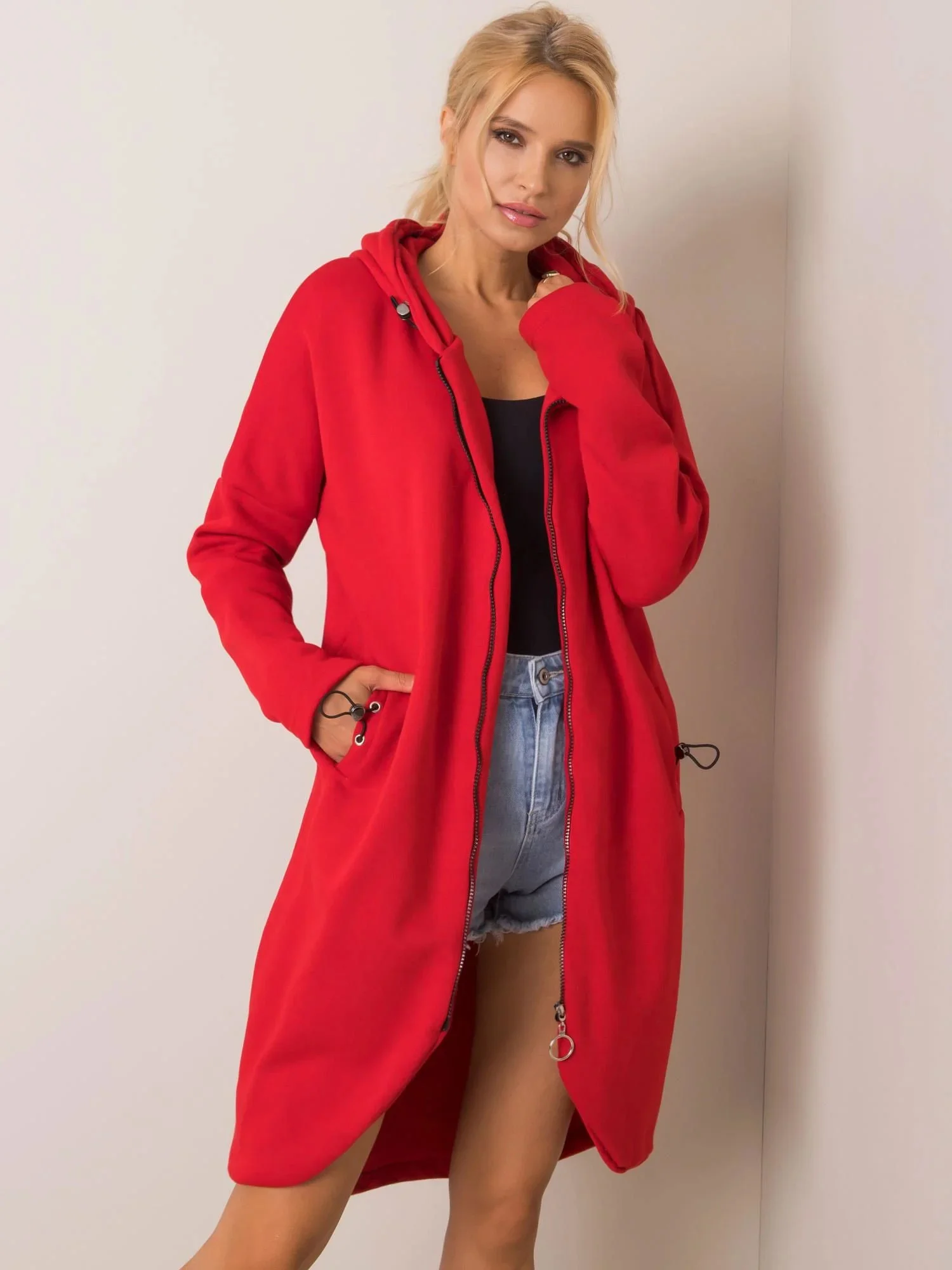 RUE PARIS Červená dlouhá mikina s kapucí.