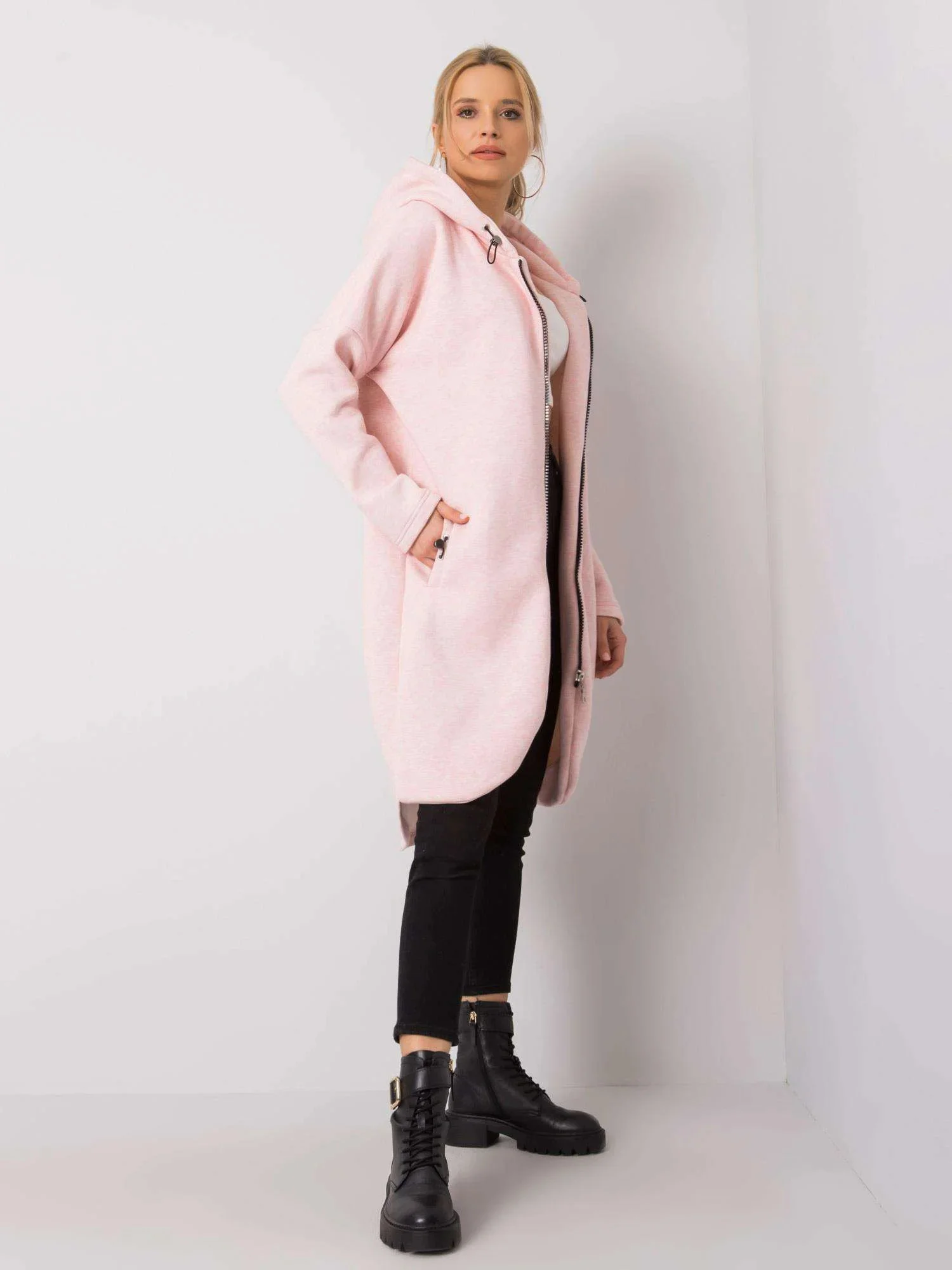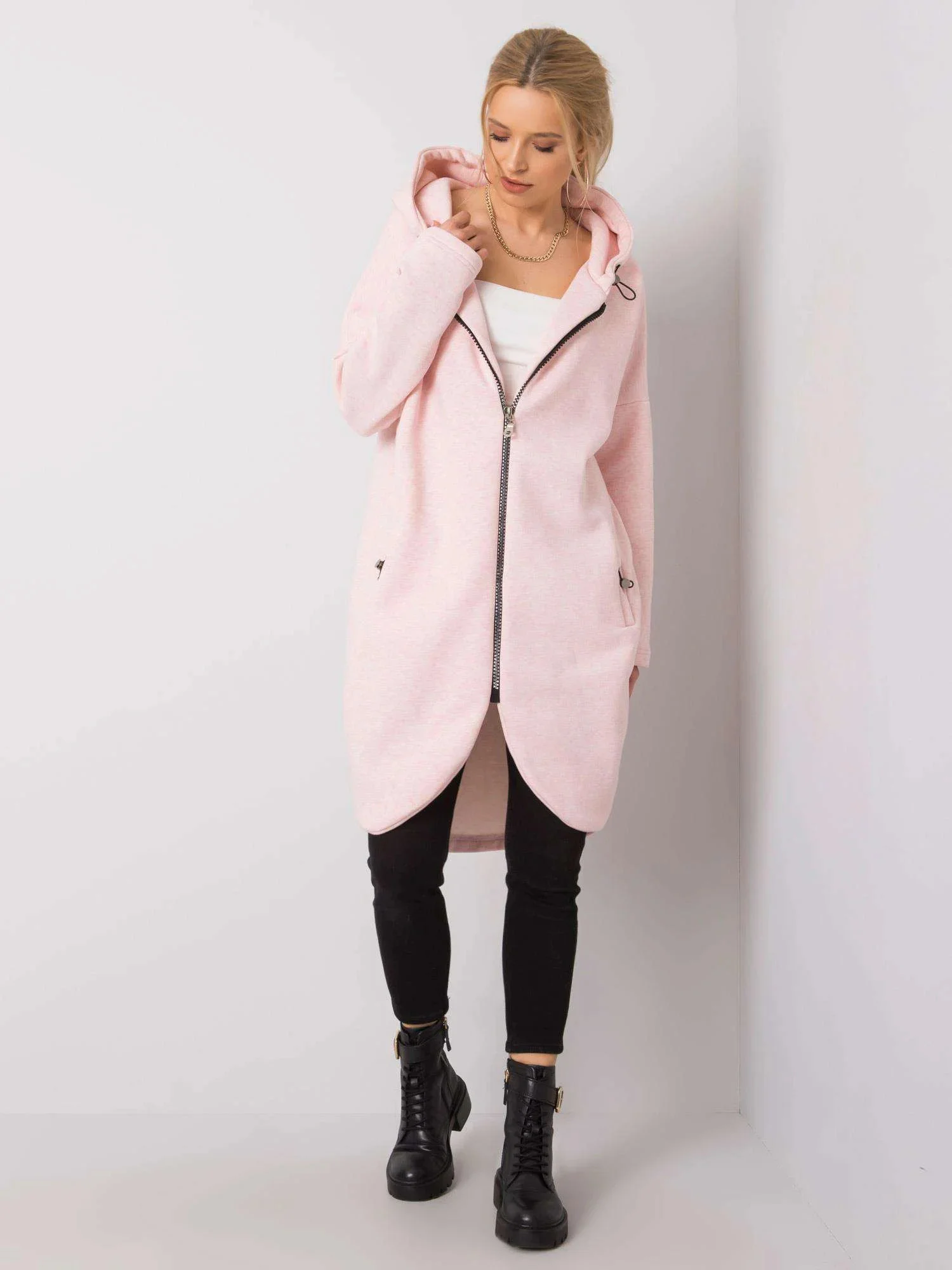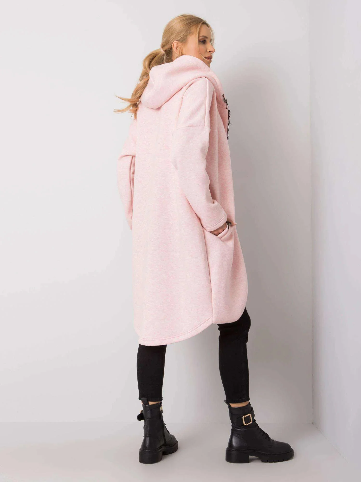 RUE PARIS Růžová dlouhá mikina s kapucí.