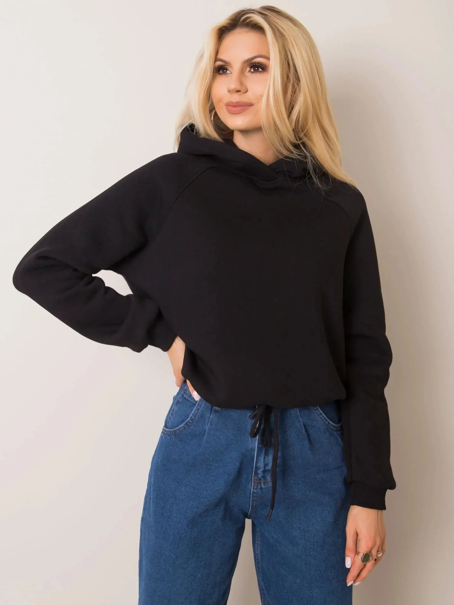 Černá mikina s kapucí.
