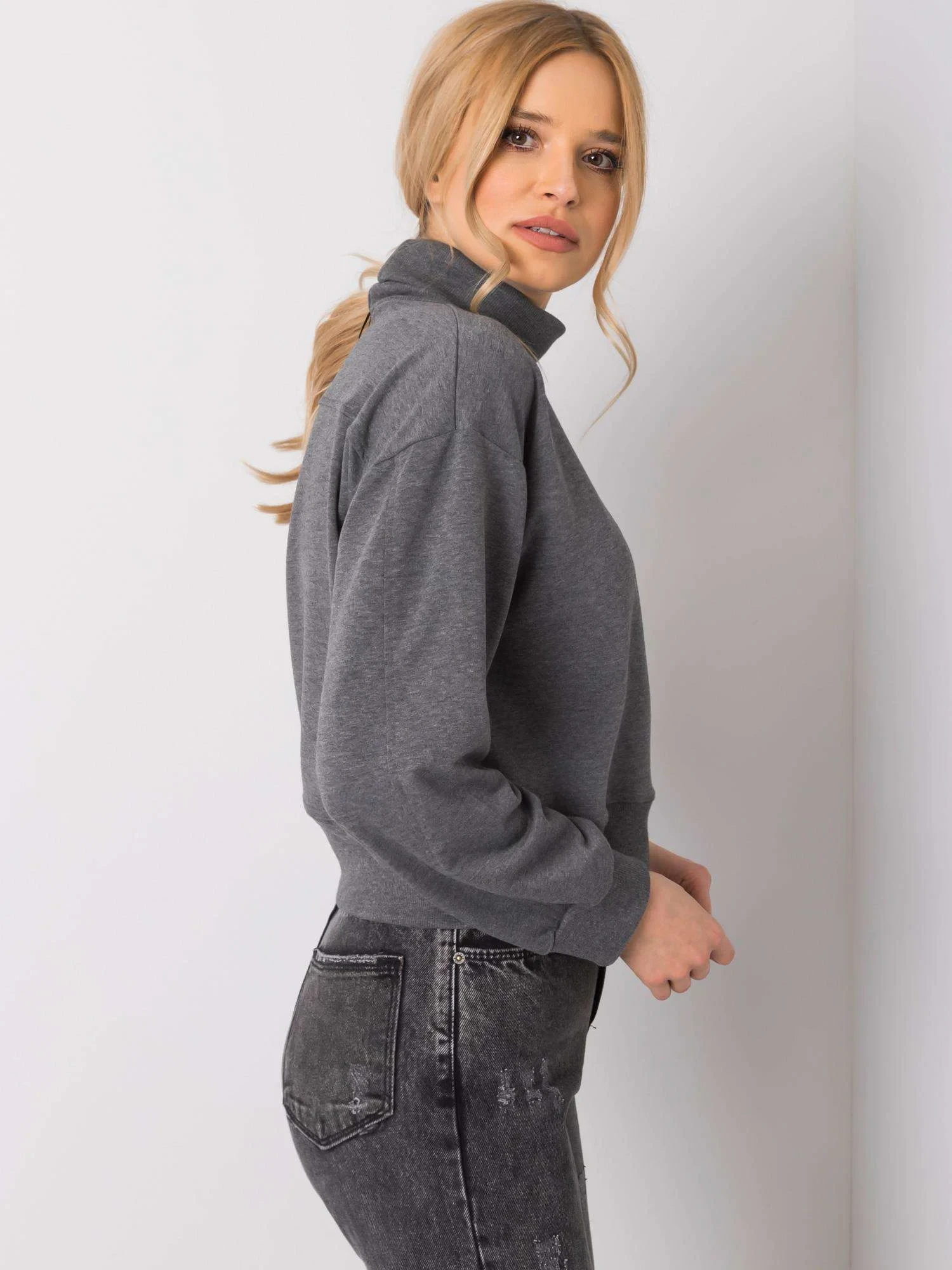 Tmavě šedá základní mikina s rolákem.