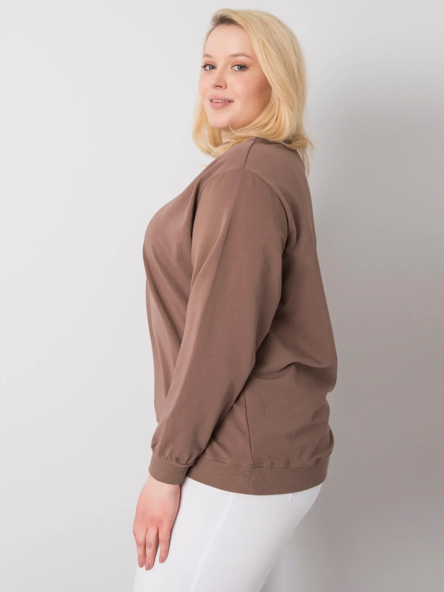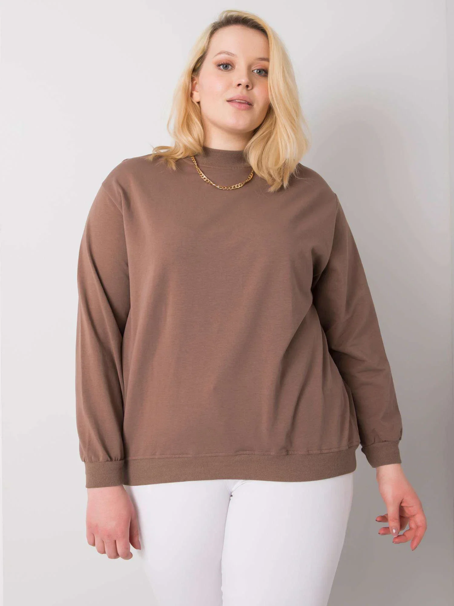 Hnědá plus size základní mikina .
