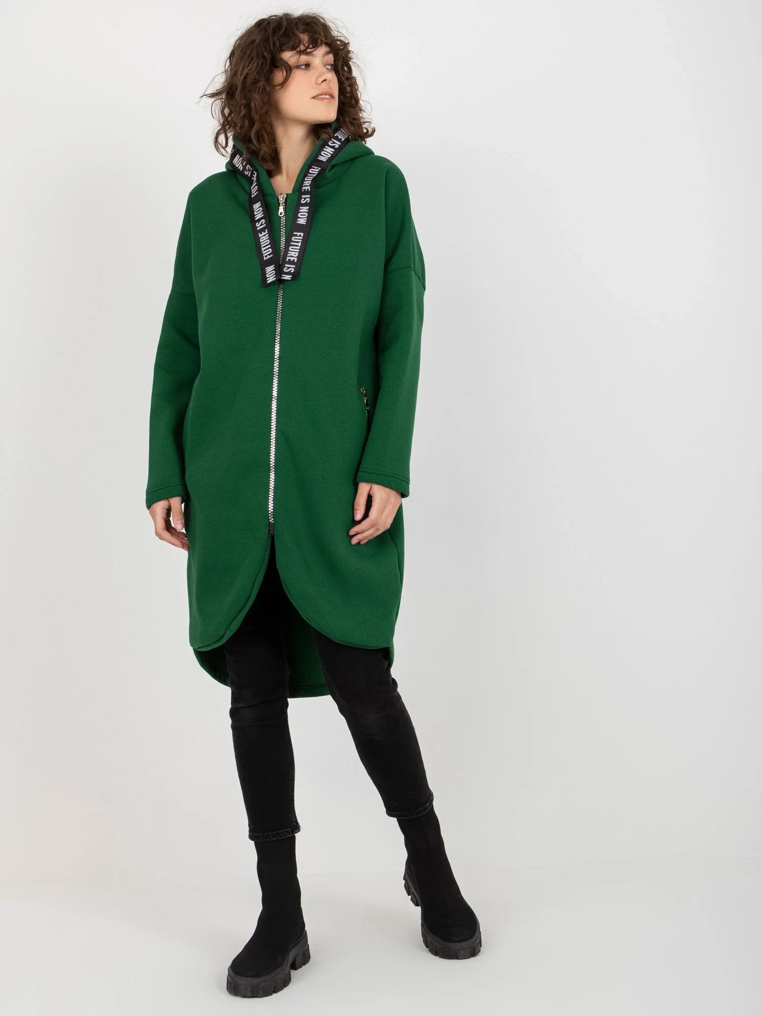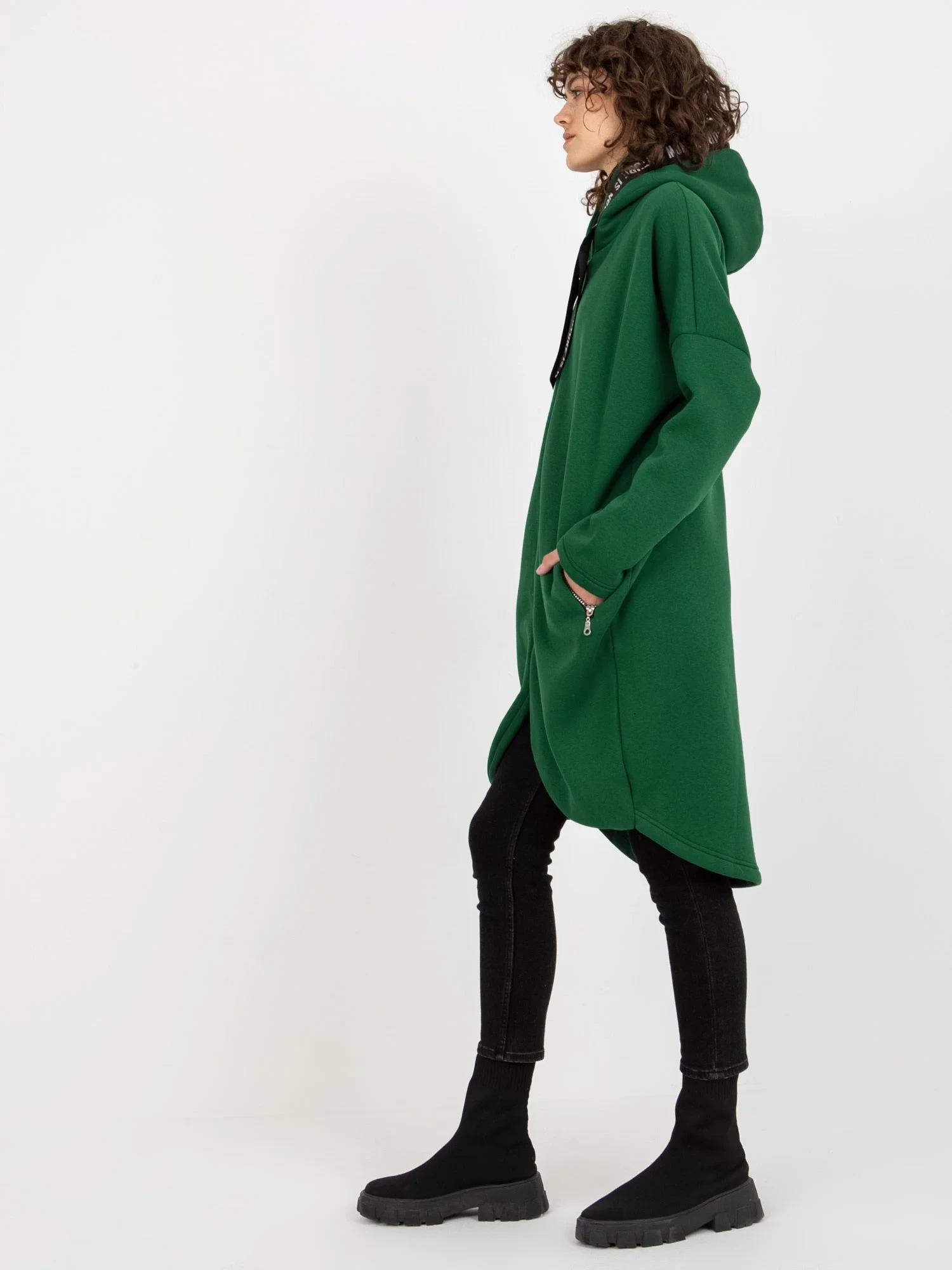 Tmavě zelená dlouhá oversize mikina .