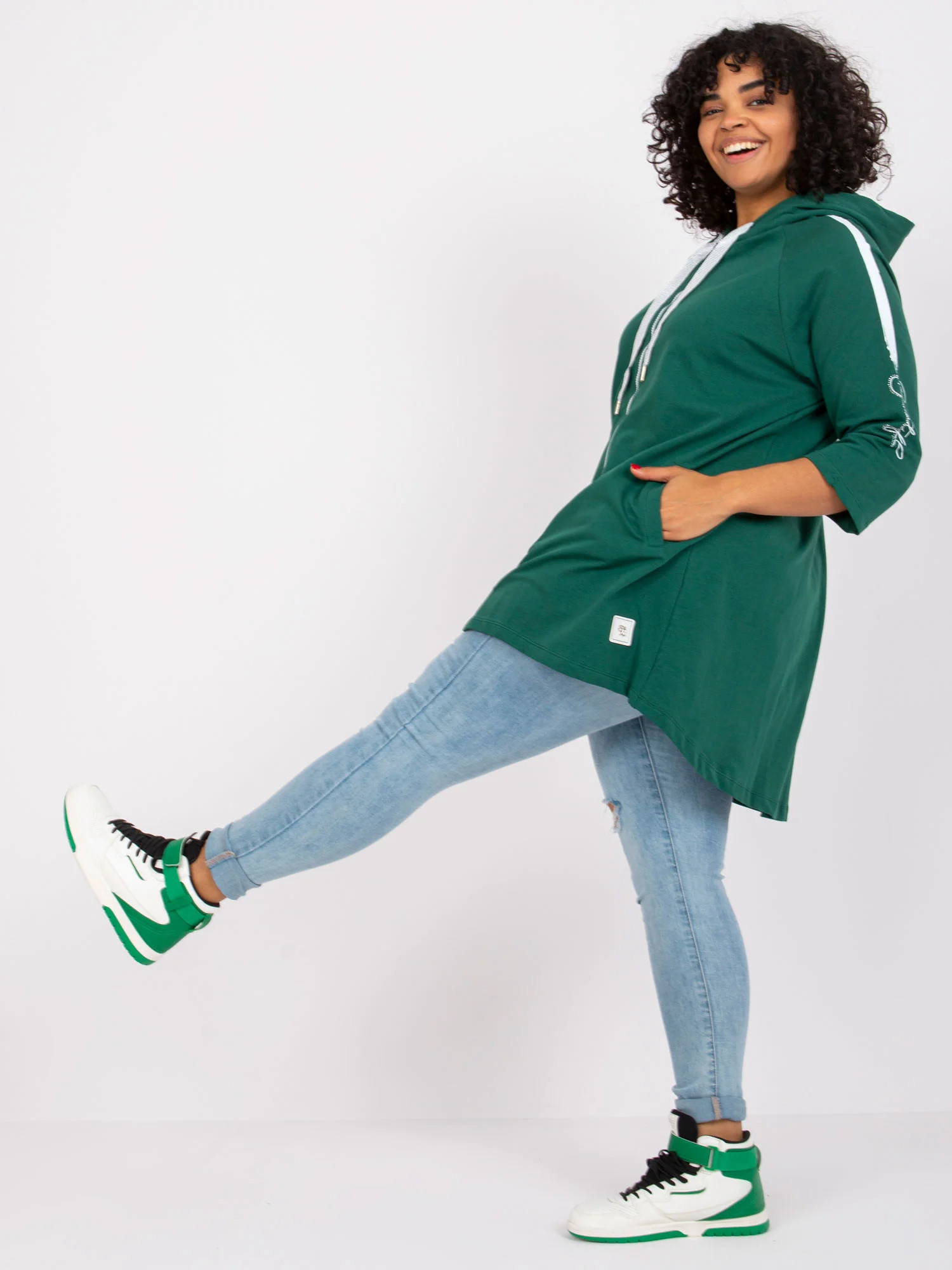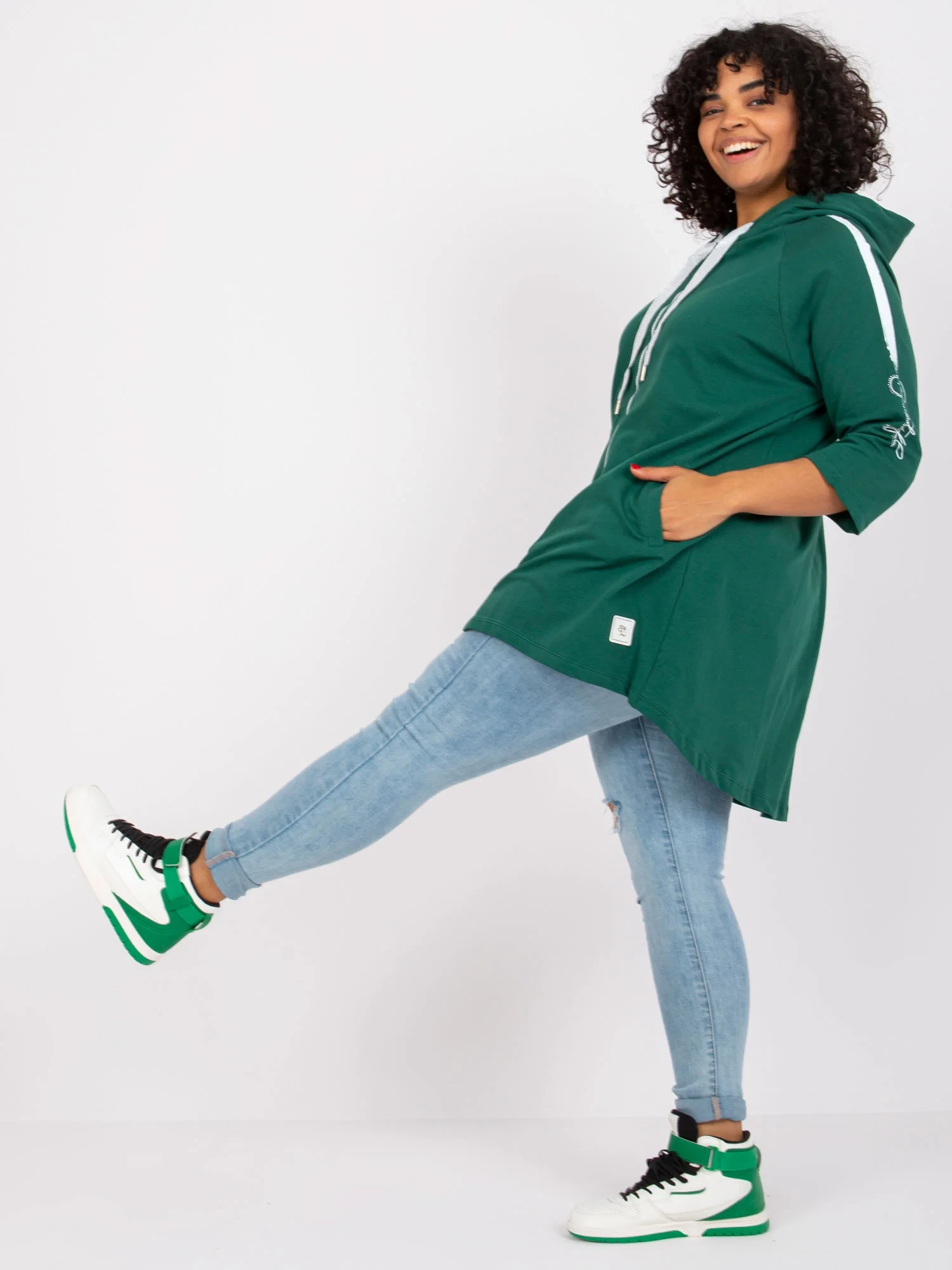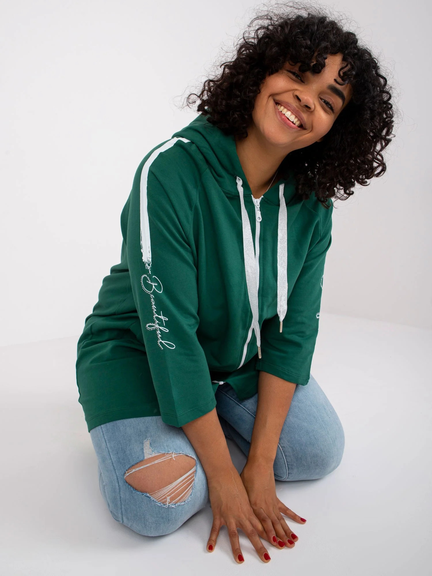 Tmavě zelená dlouhá mikina na zip s kapucí .