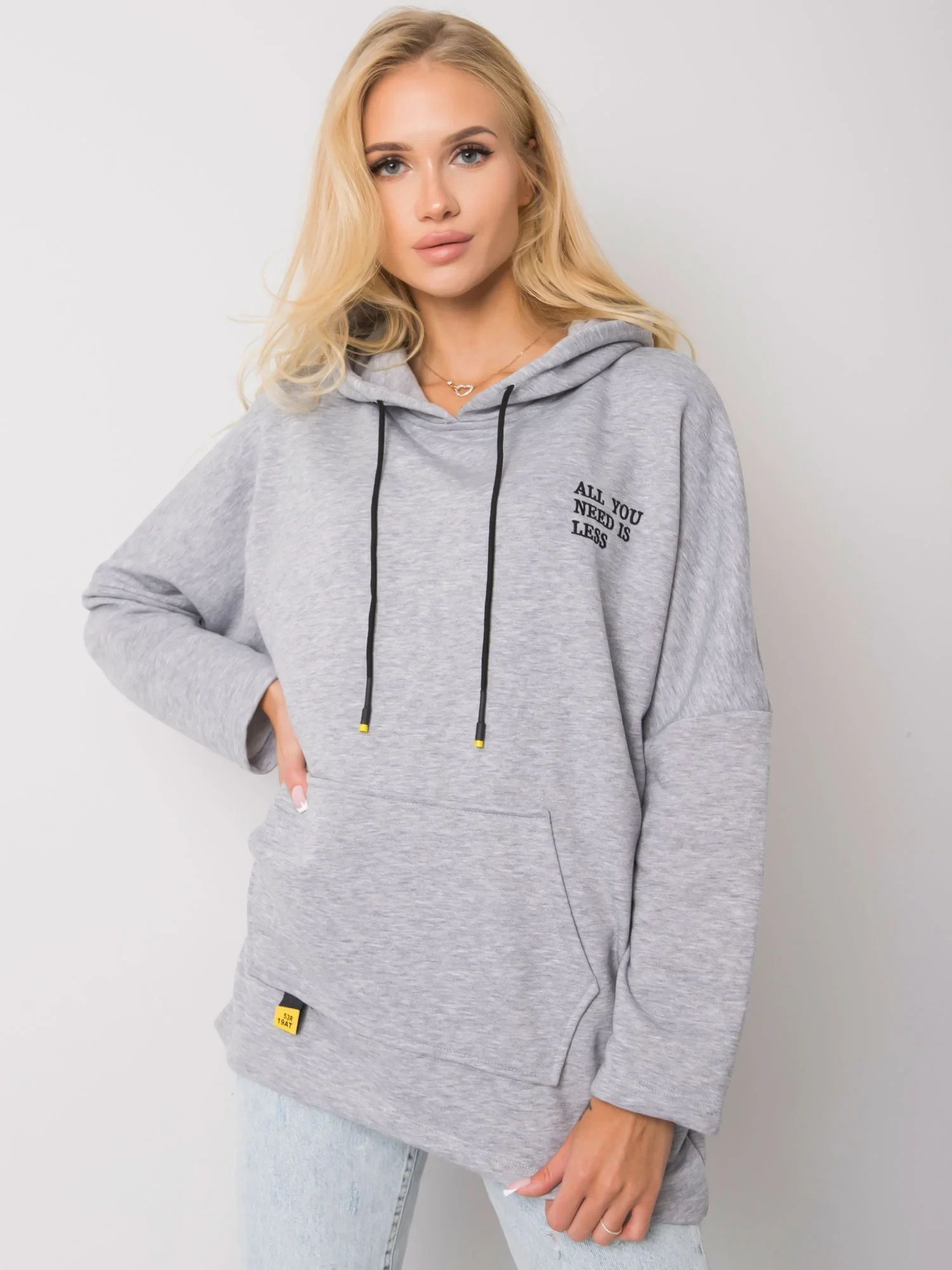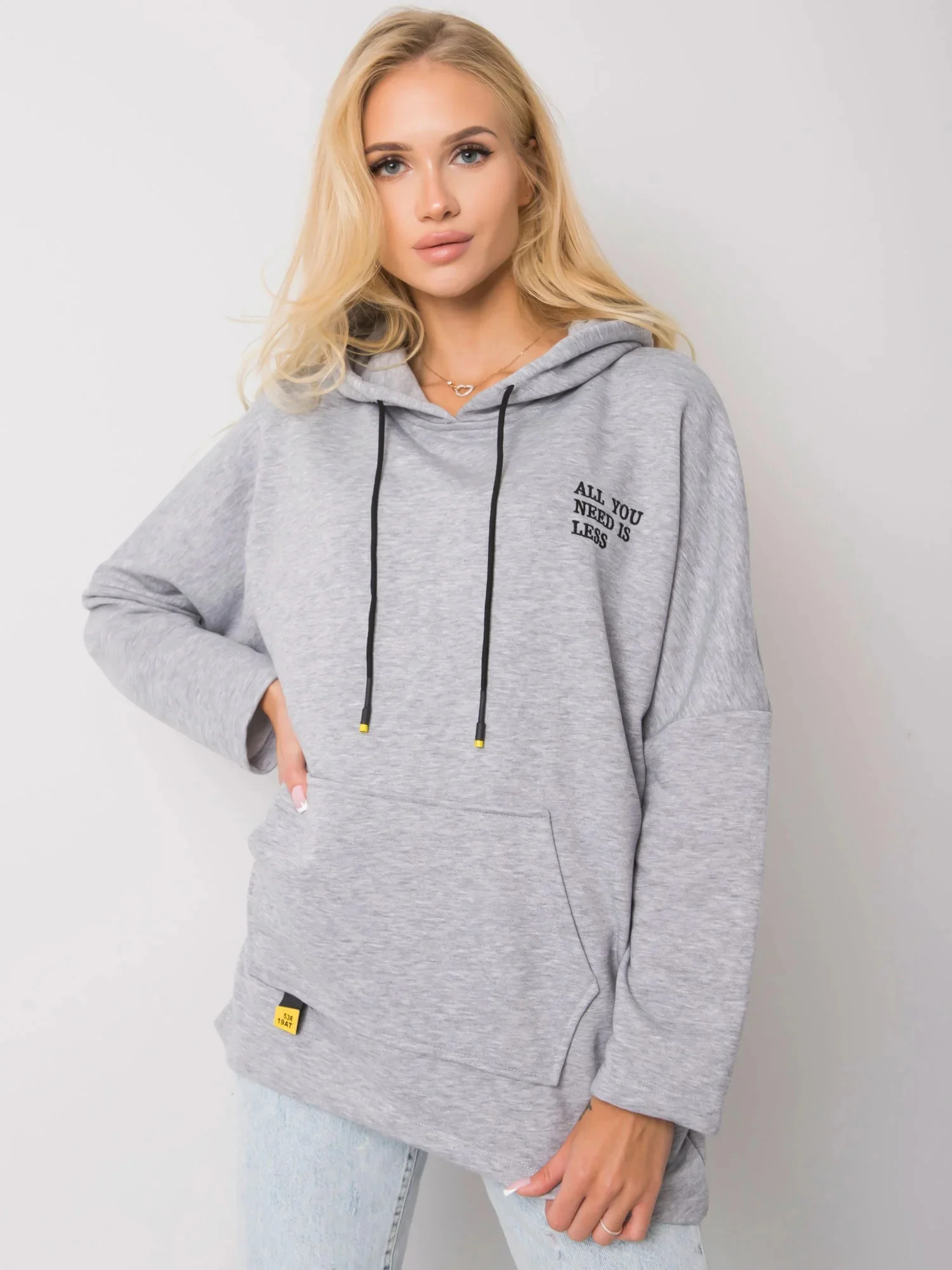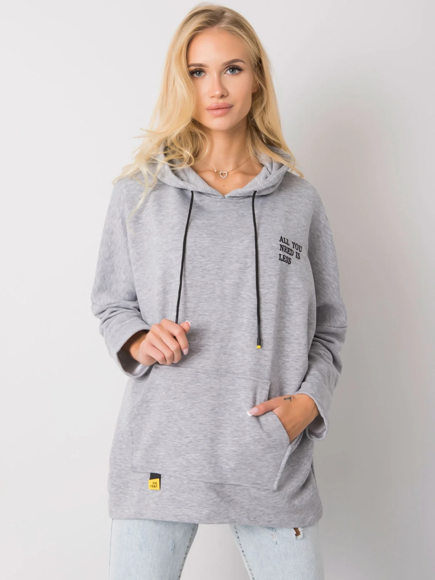 Šedá melanžová klokaní mikina s kapucí.