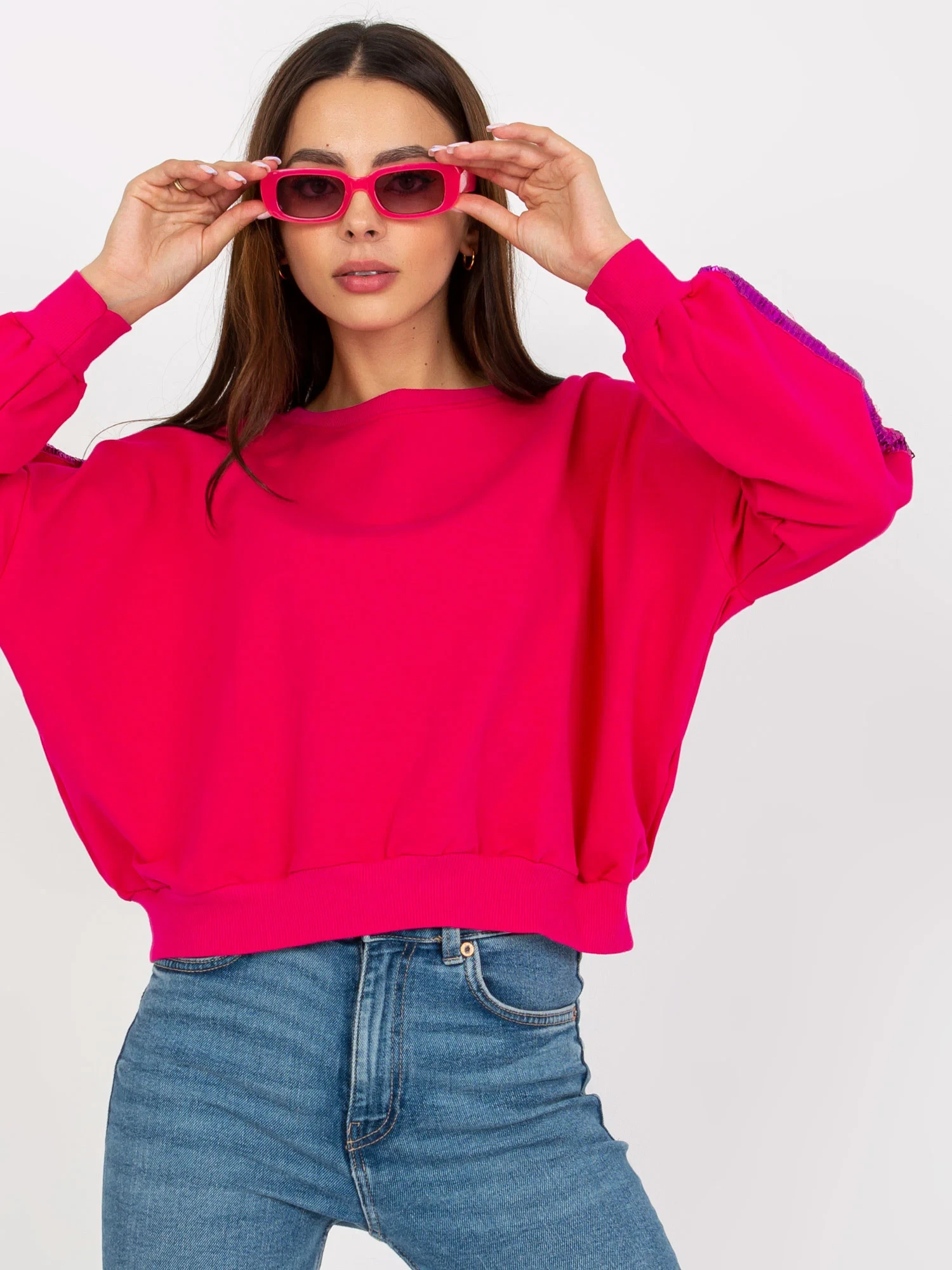 Fuchsiová krátká mikina s kapucí a flitry RUE PARIS .