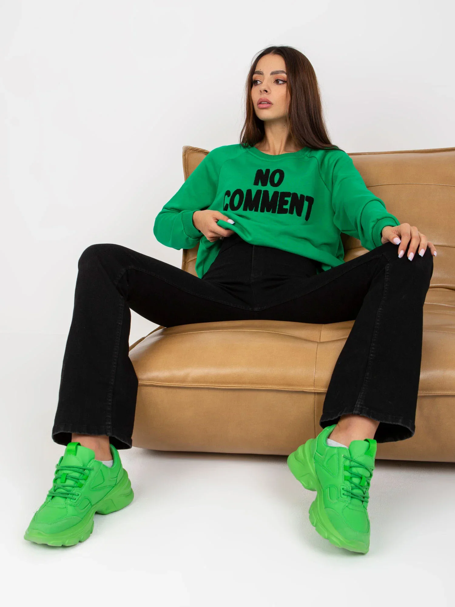 Zelená bavlněná mikina bez kapuce RUE PARIS .