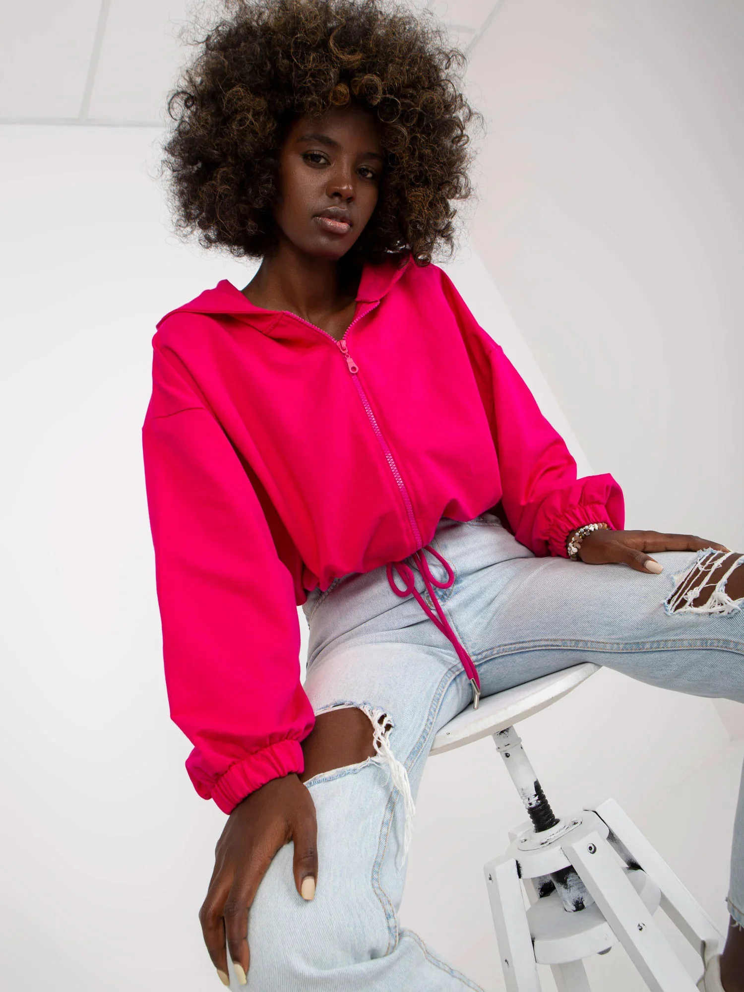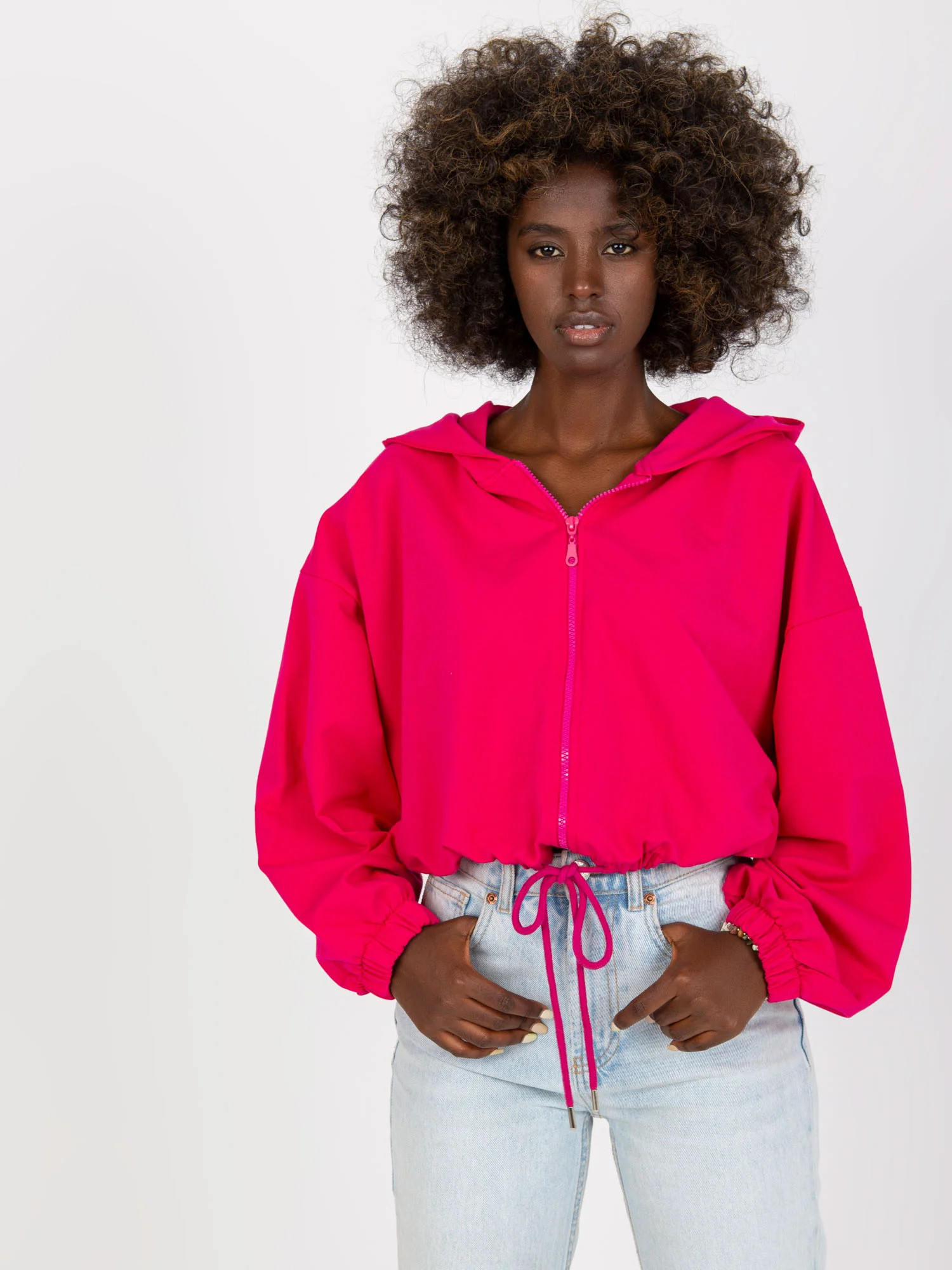 Fuchsiová rozepínací basic mikina se širokými rukávy od RUE PARIS .