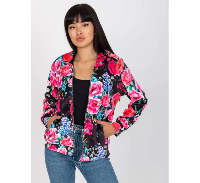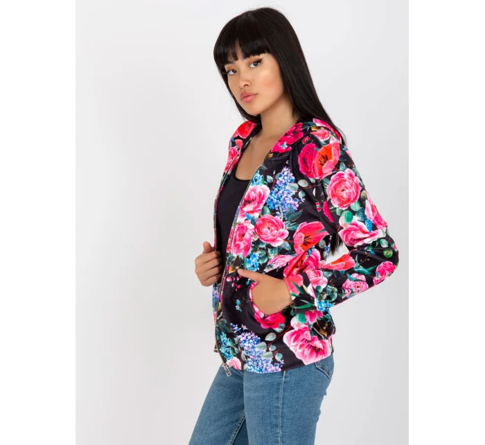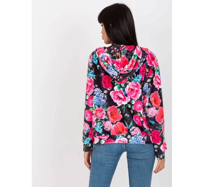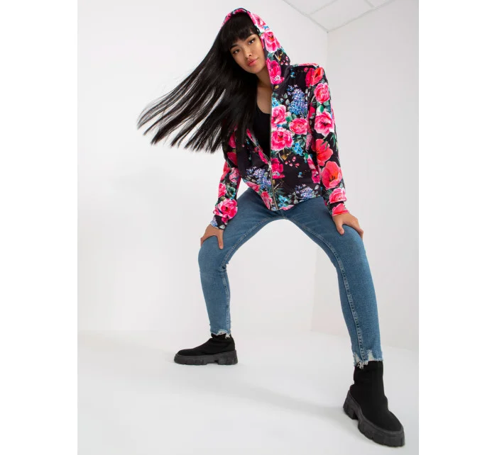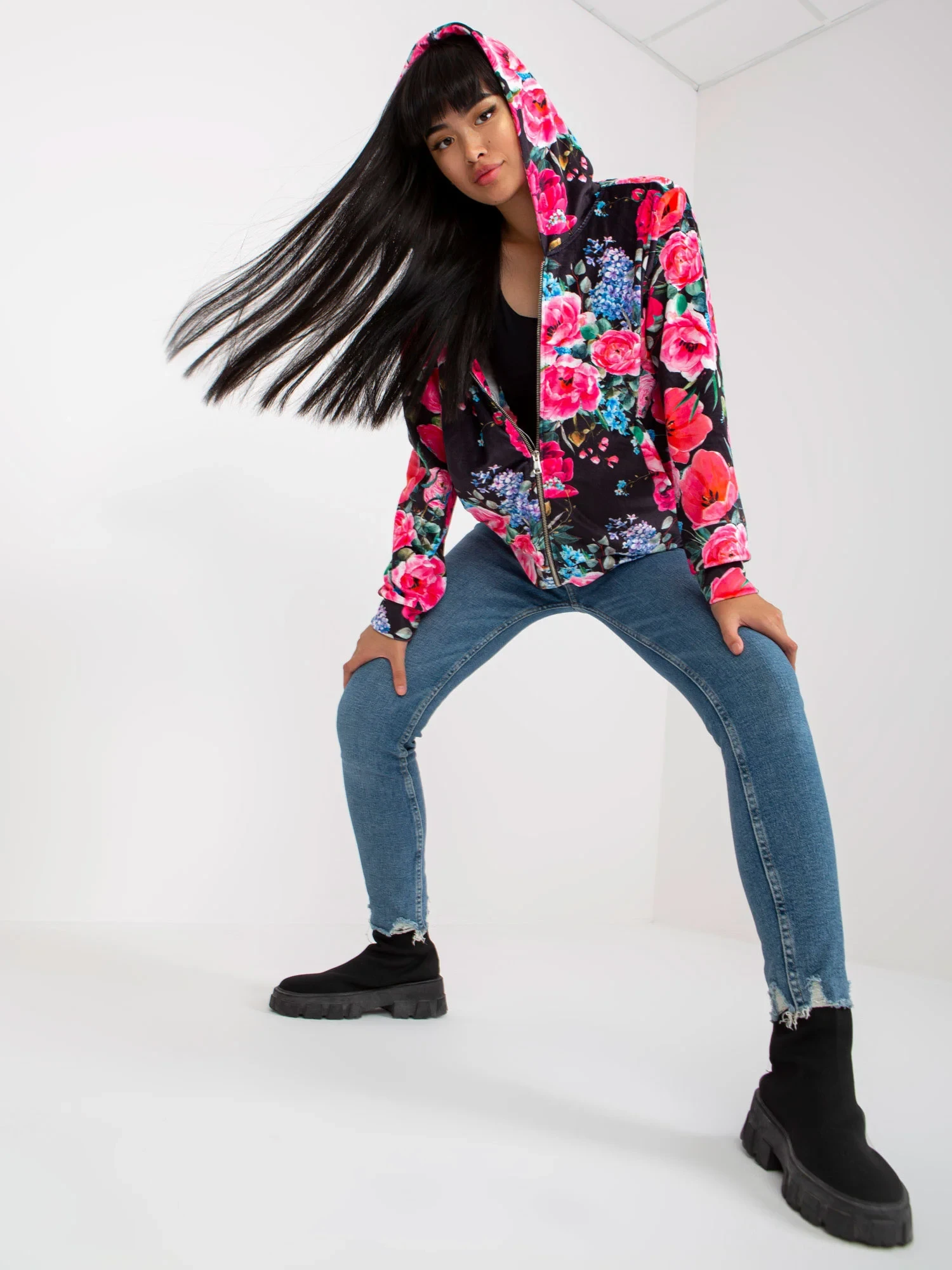 Černo-růžová rozepínací květinová mikina od značky RUE PARIS .