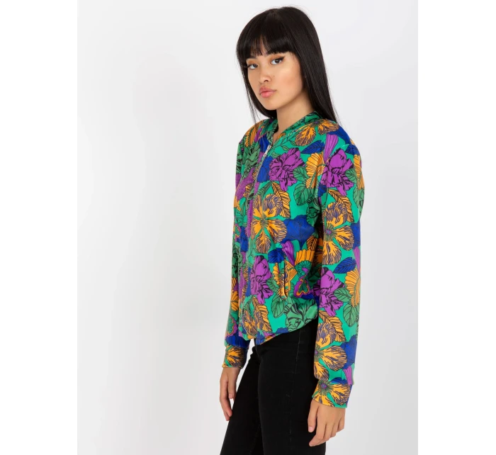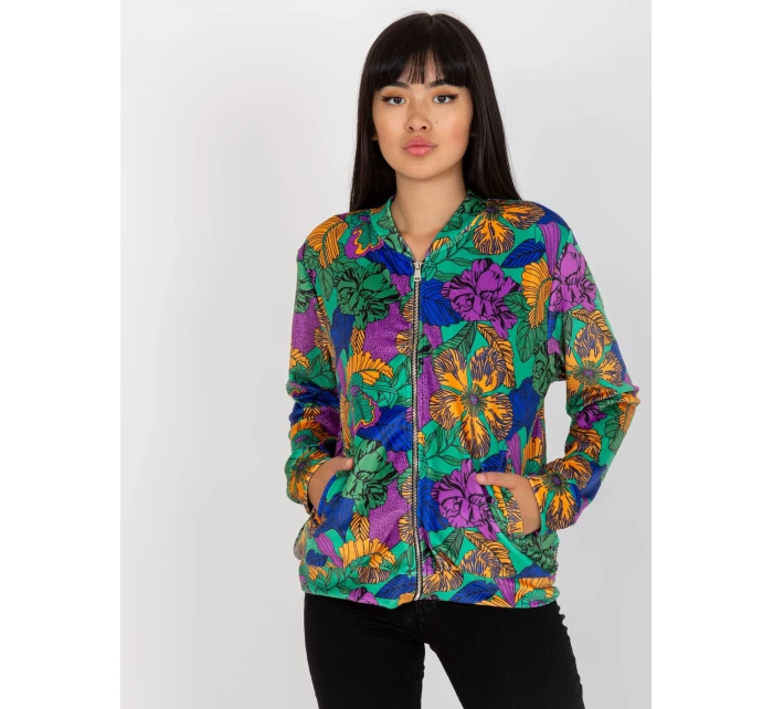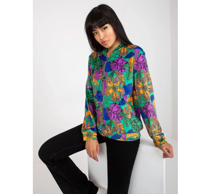 Zeleno-oranžová vzorovaná bunda bomber značky RUE PARIS.