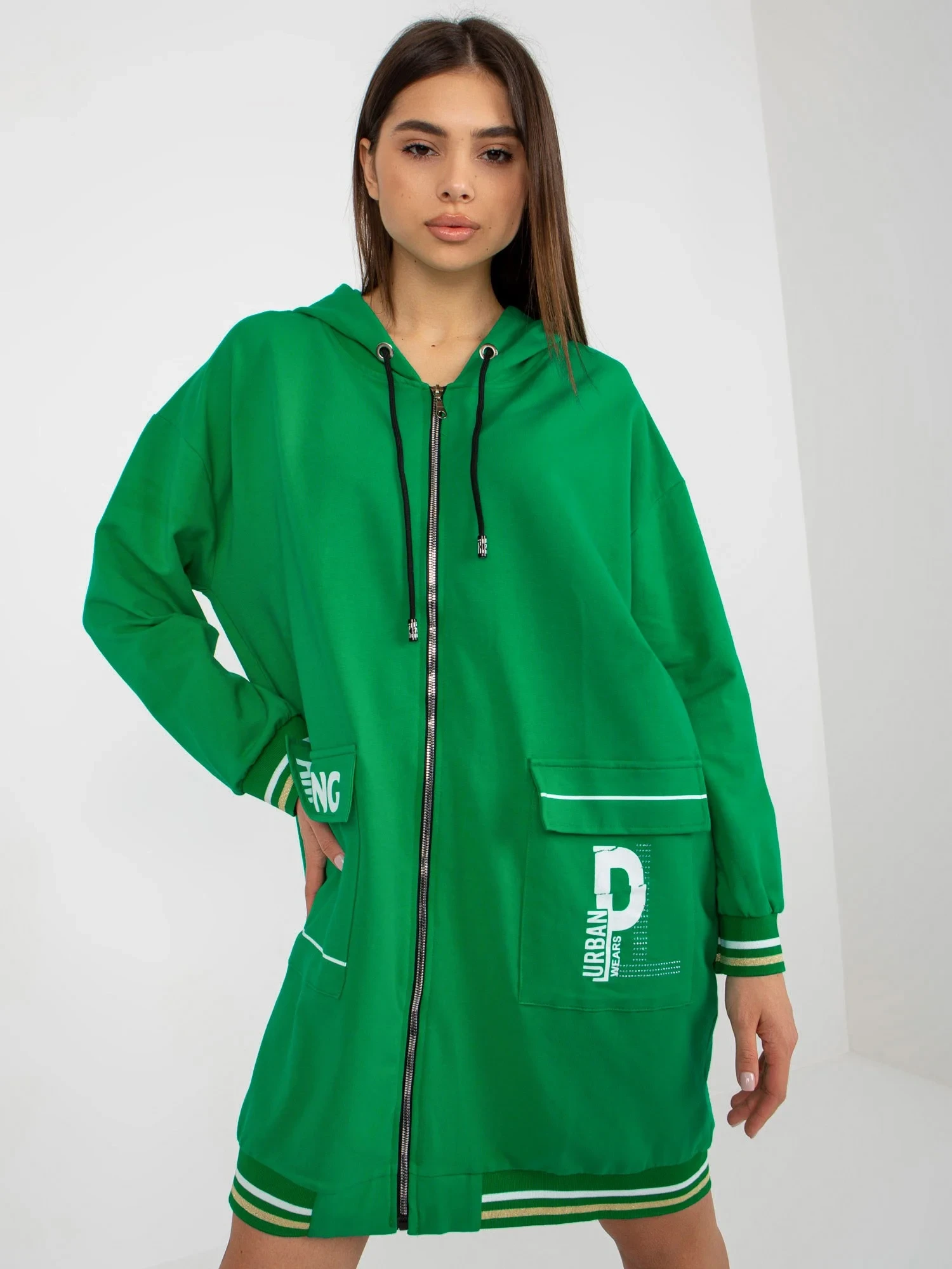 Zelená dlouhá mikina na zip s nápisem .