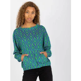 Zelenomodrá velurová mikina s potiskem RUE PARIS .