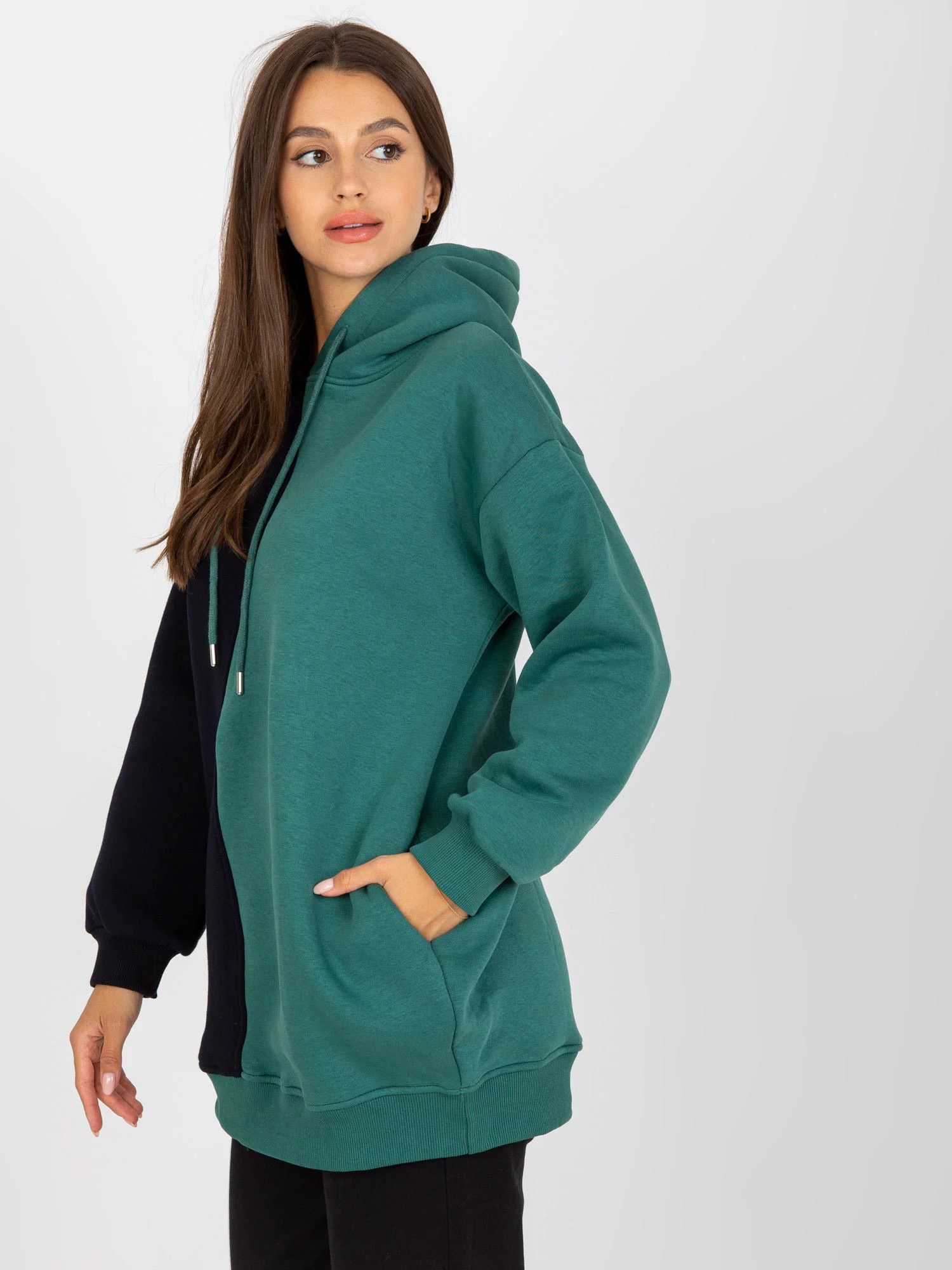 Černo-zelená dámská základní mikina s kapucí od značky RUE PARIS .