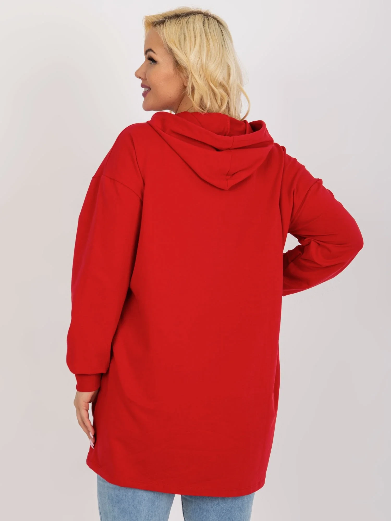 Červená delší plus size mikina s nápisy .