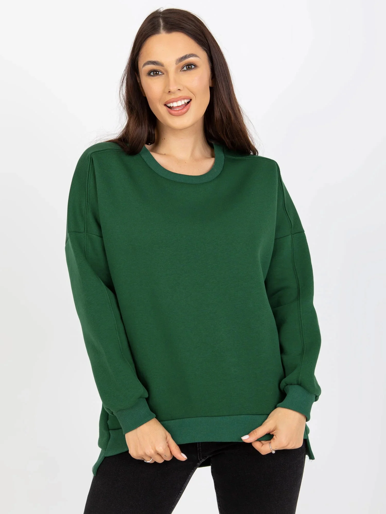 Tmavě zelená mikina basic s dlouhými rukávy .