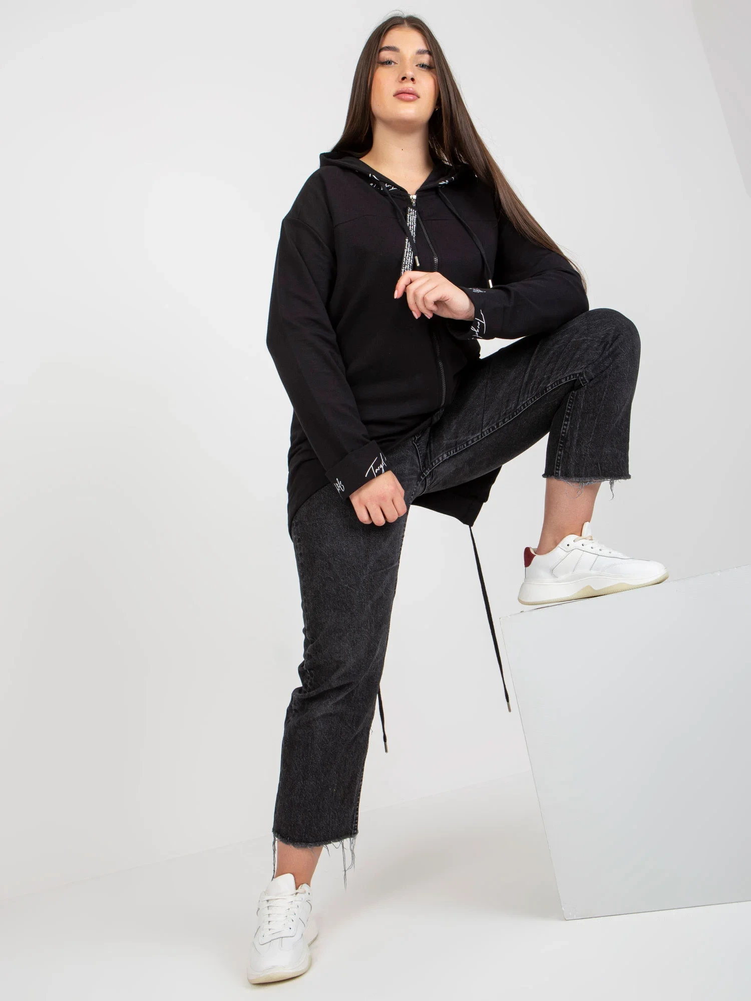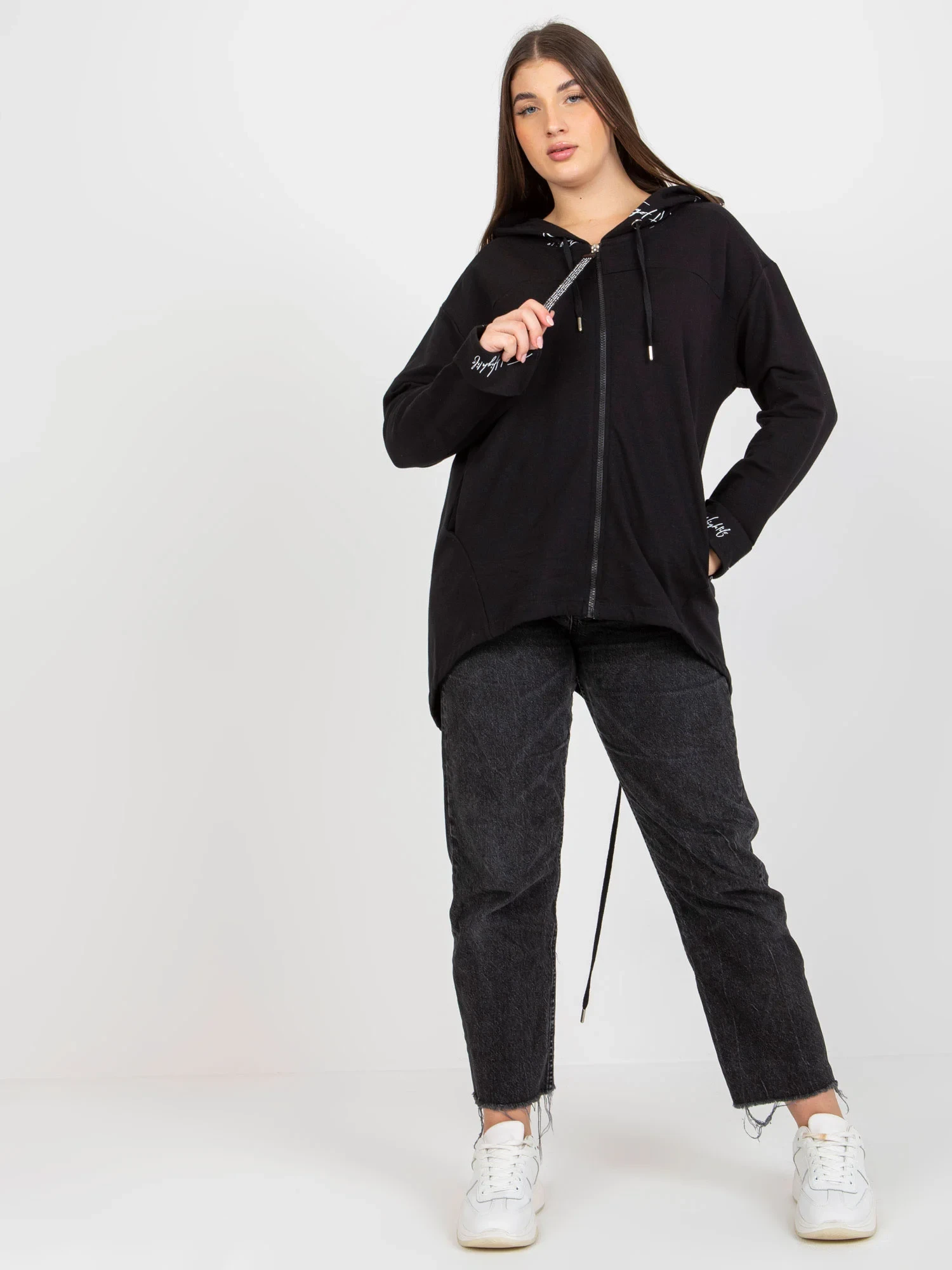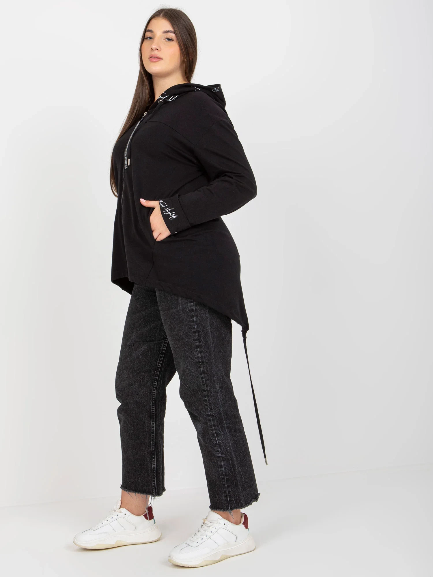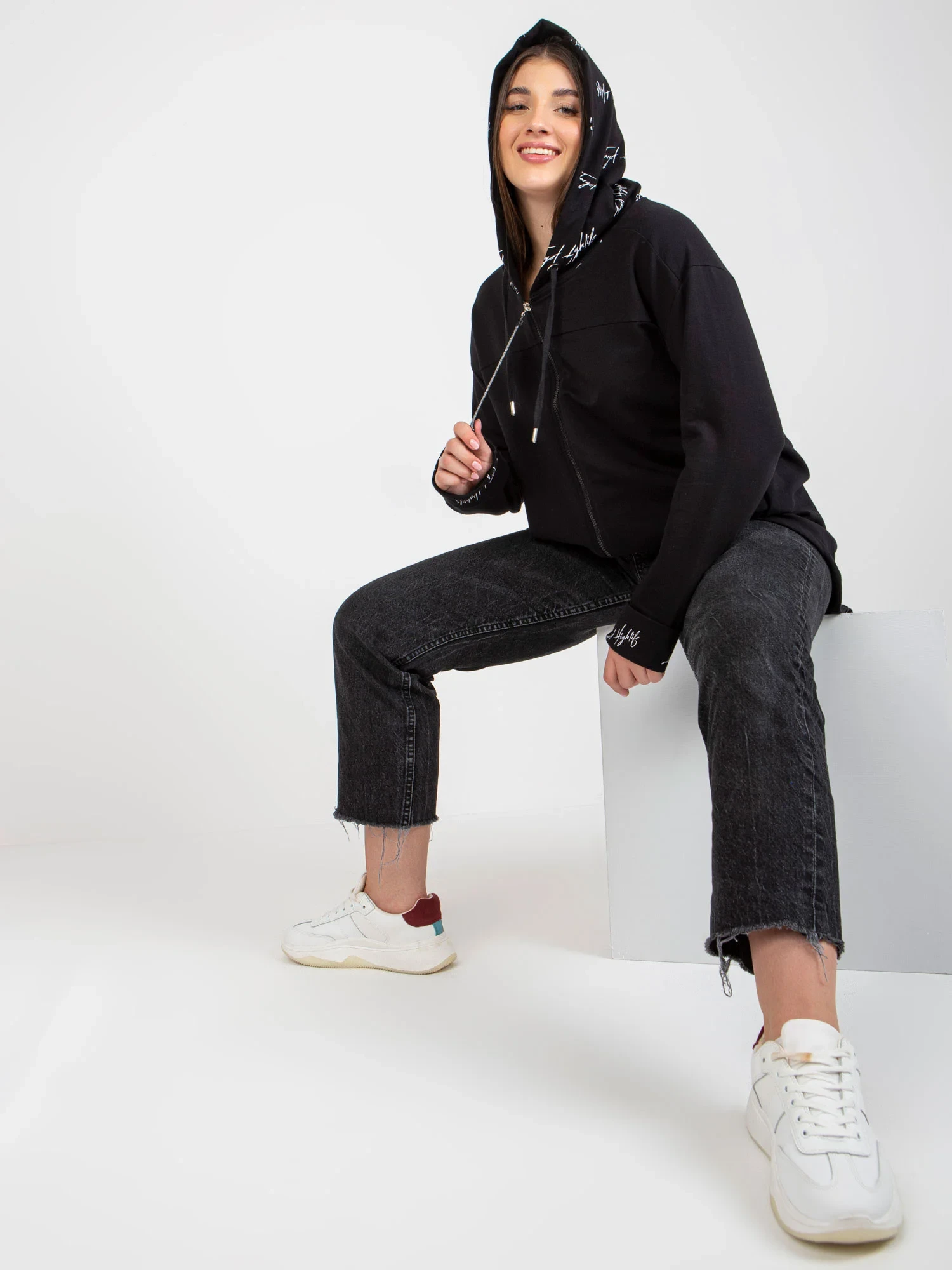 Černá rozepínací mikina plus size s kapucí a nápisem .