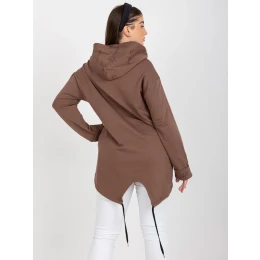 Hnědá rozepínací mikina plus size s kapucí a nápisem .