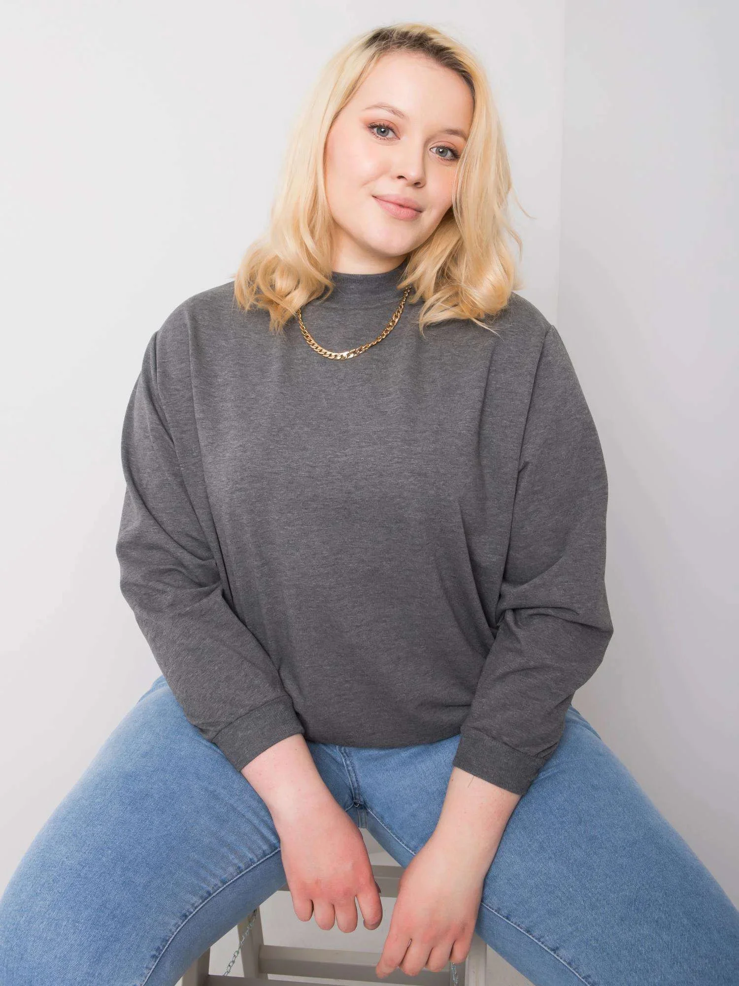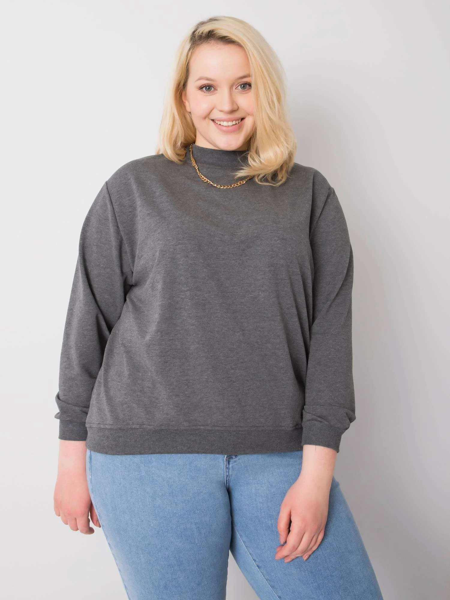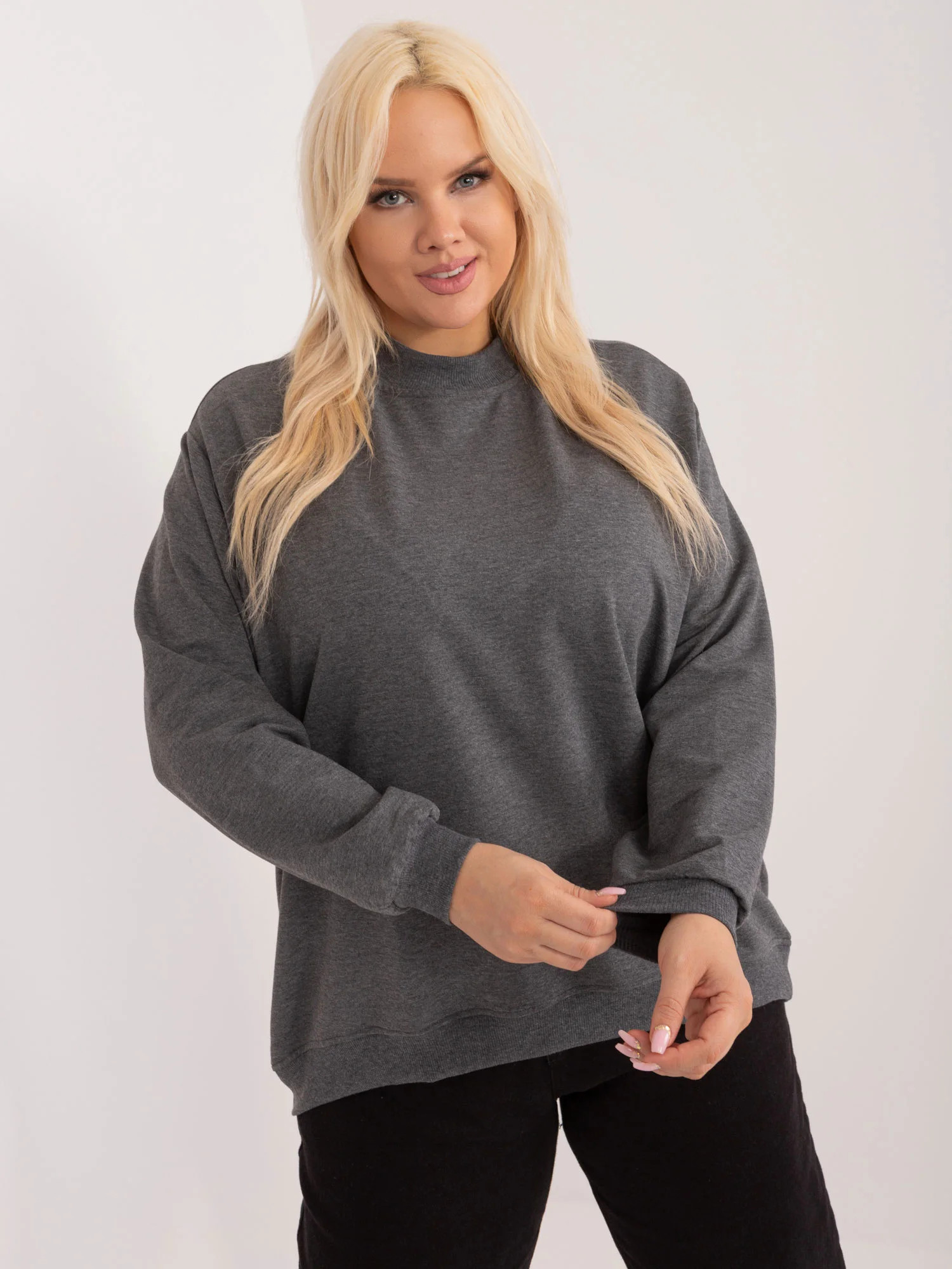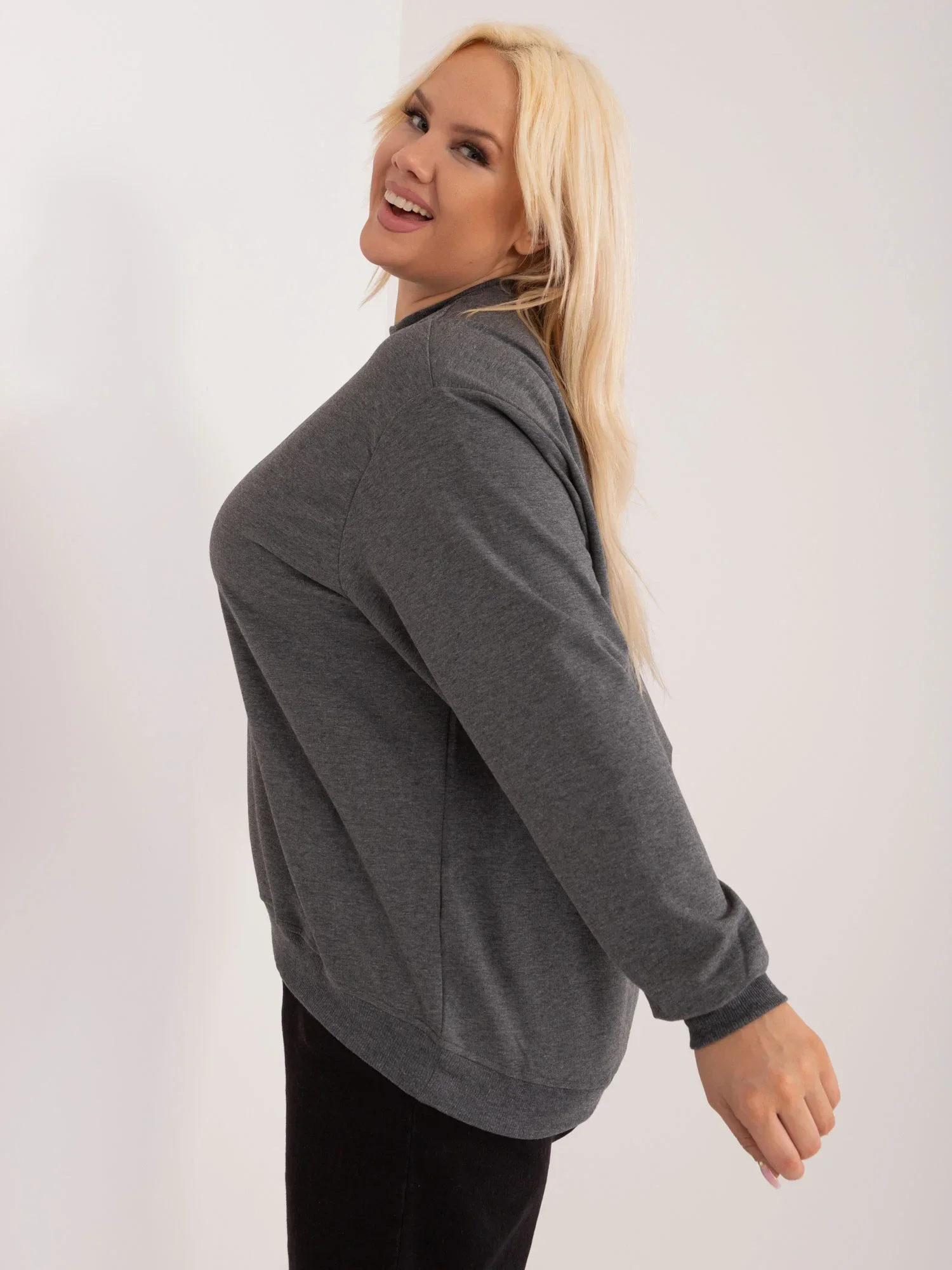 Tmavě šedá melanžová mikina plus size basic.