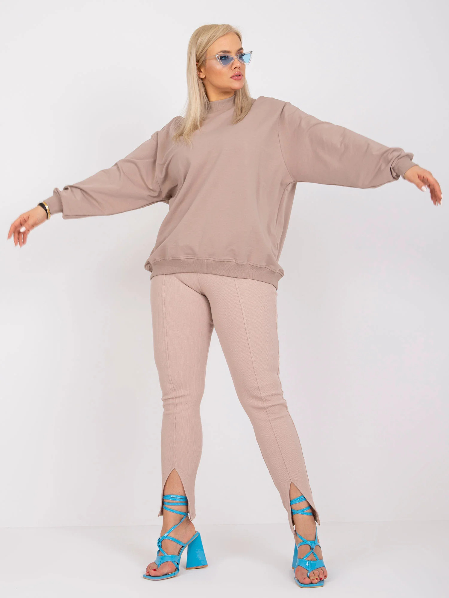 Modelka má na sobě velikost 2XL. Rozměry modelky: výška 172 cm, prsa 103 cm, pas 73 cm, boky 103 cm.