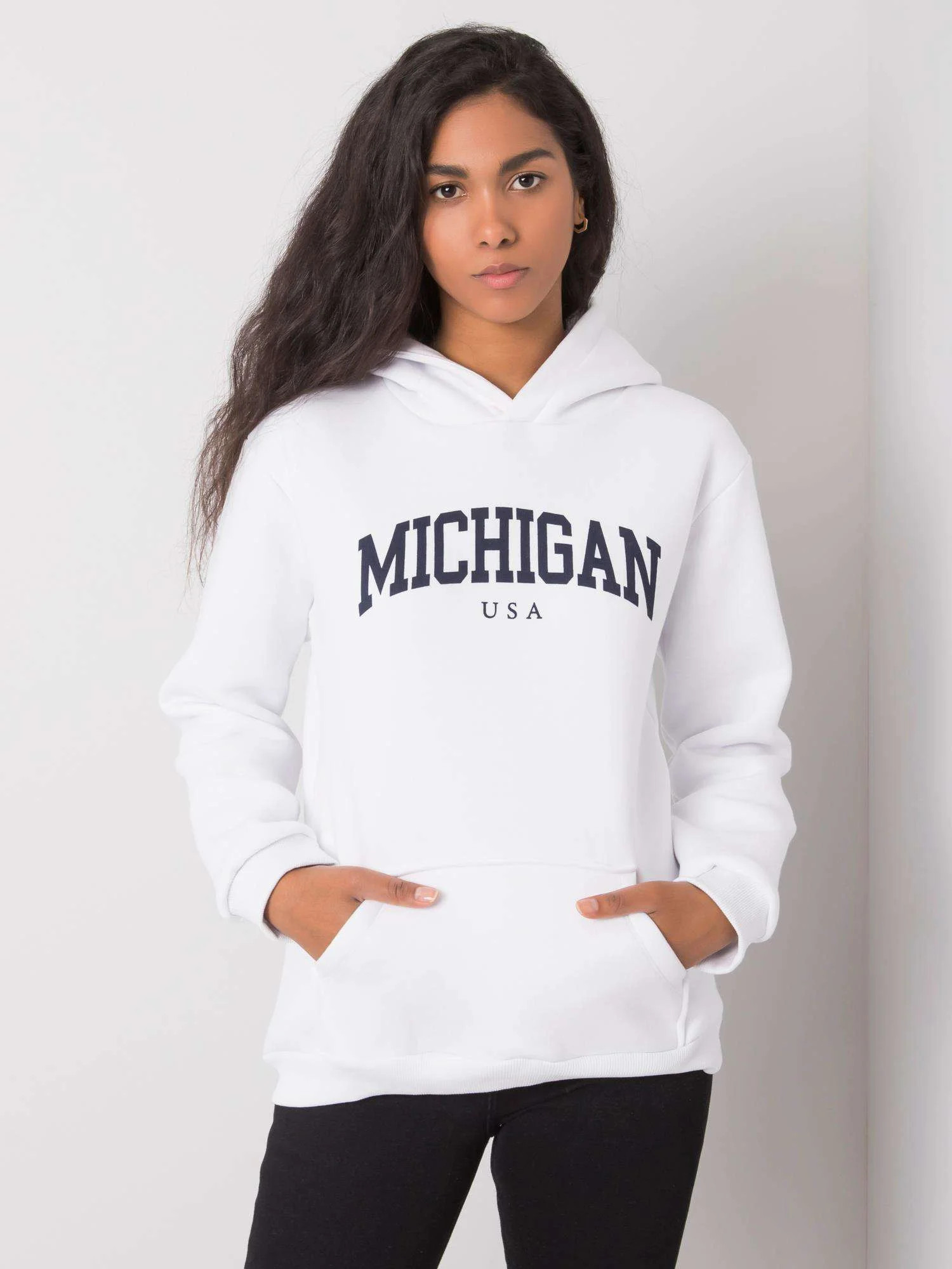 RUE PARIS Bílá dámská mikina s klokankou.