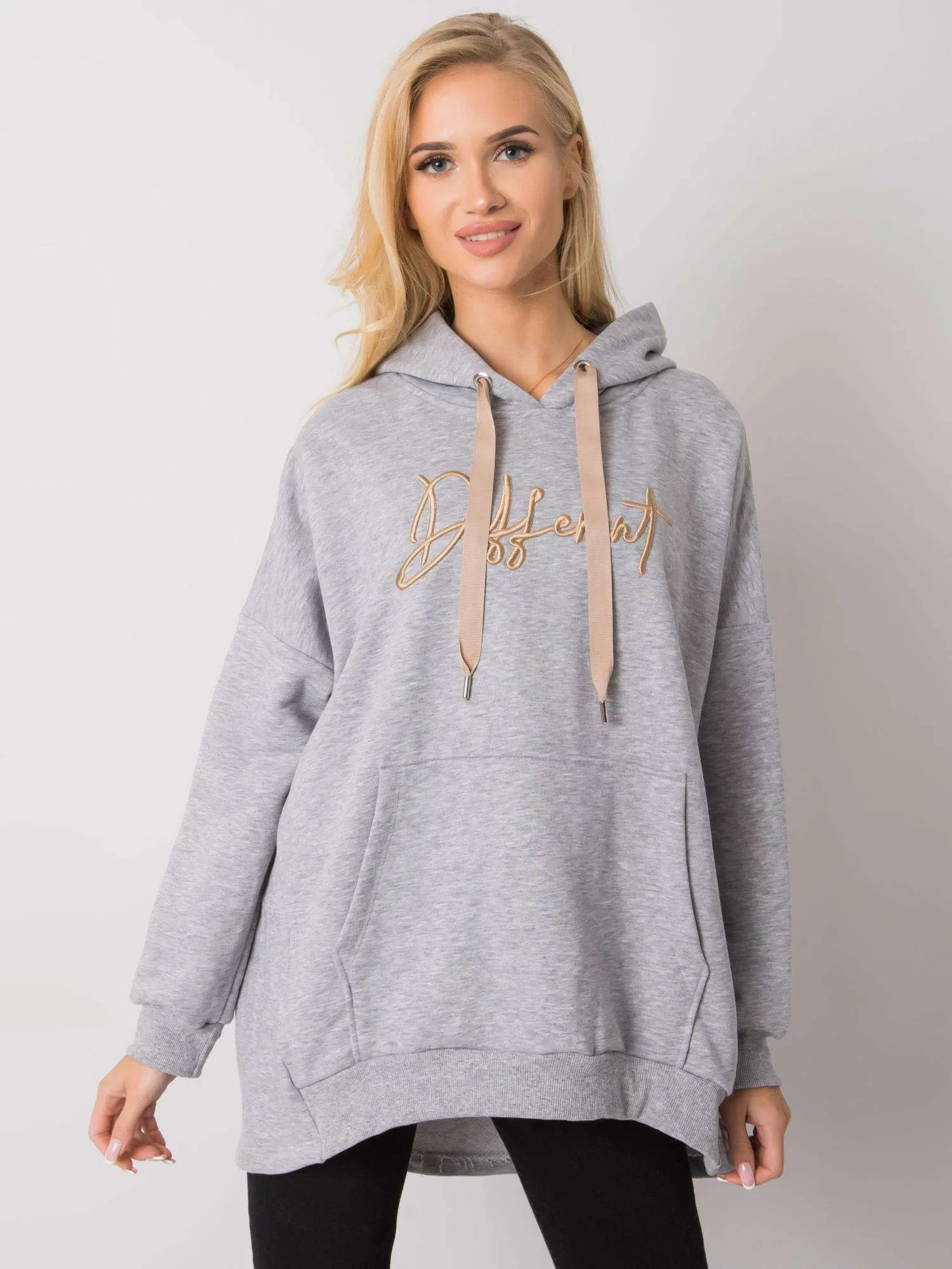 Šedá melanžová bavlněná mikina s kapucí.