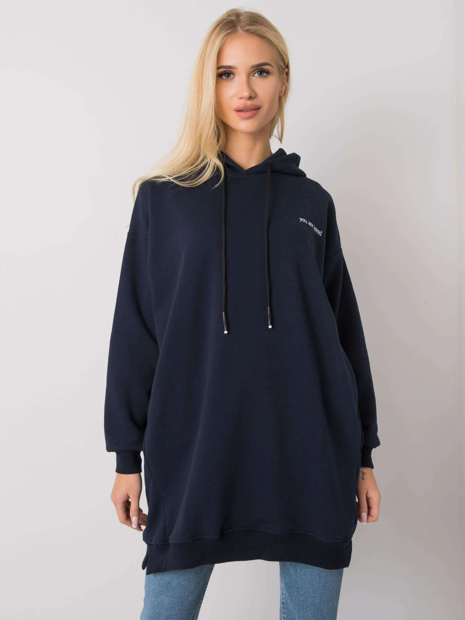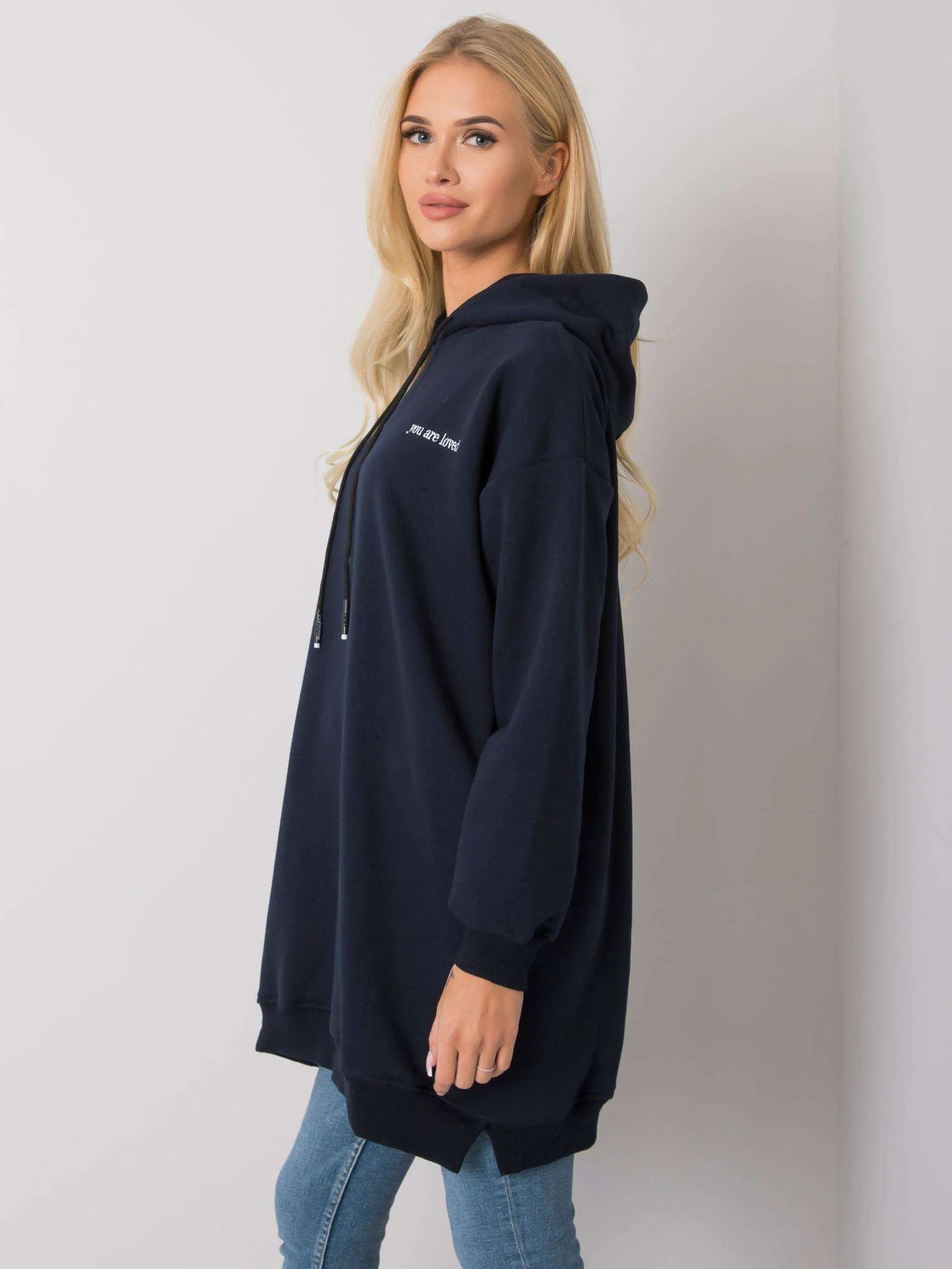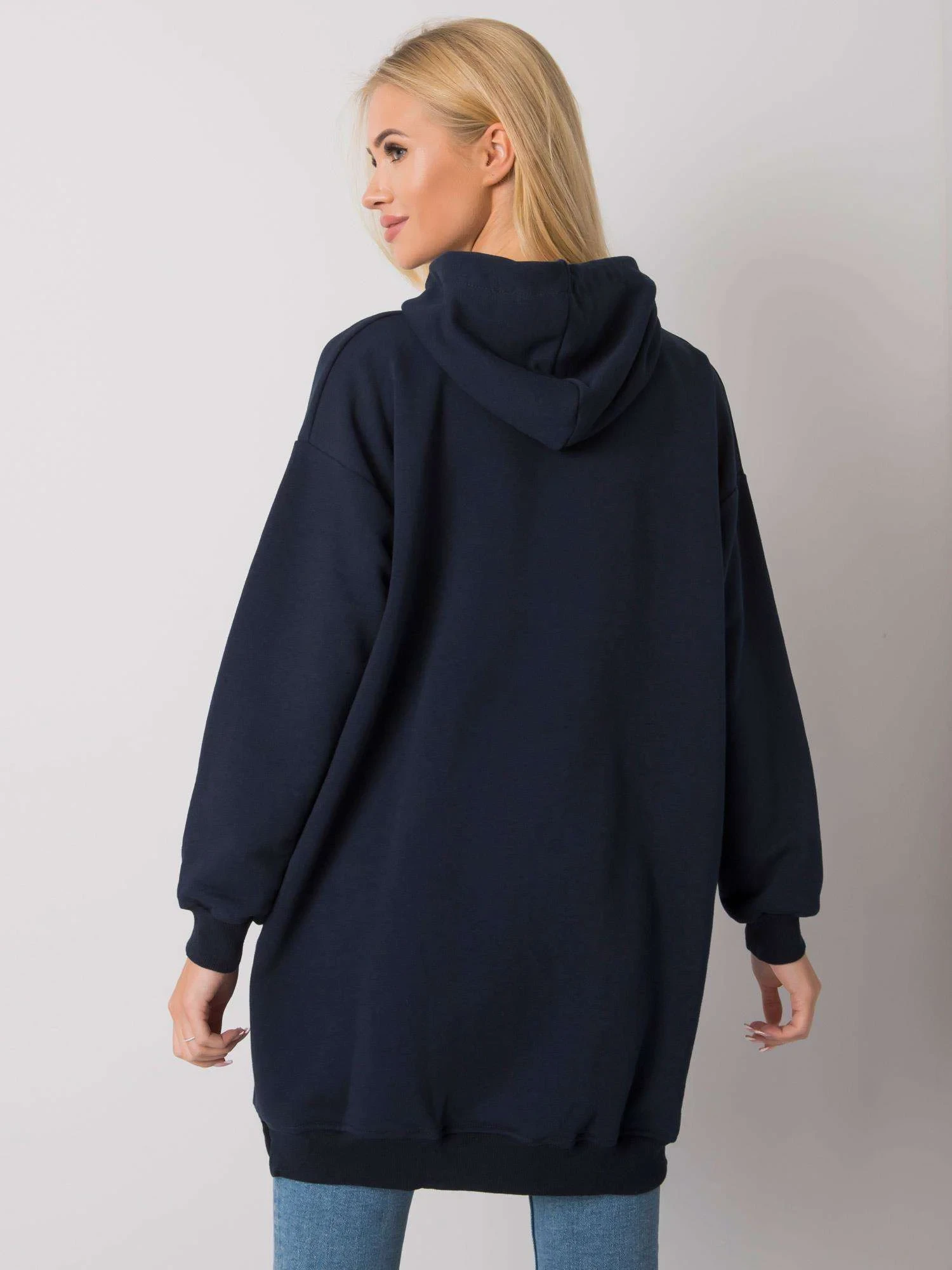 Dámská tmavě modrá mikina s kapucí.