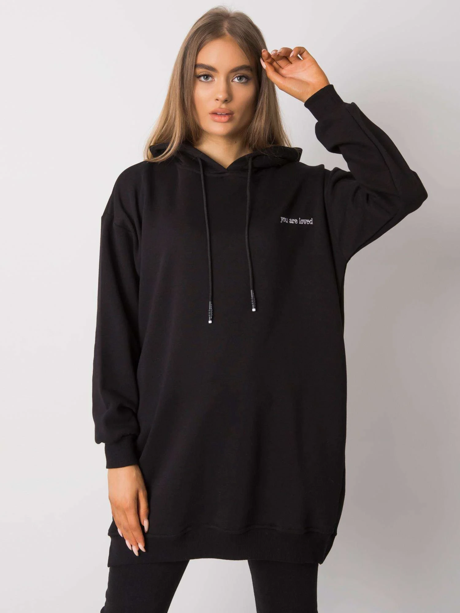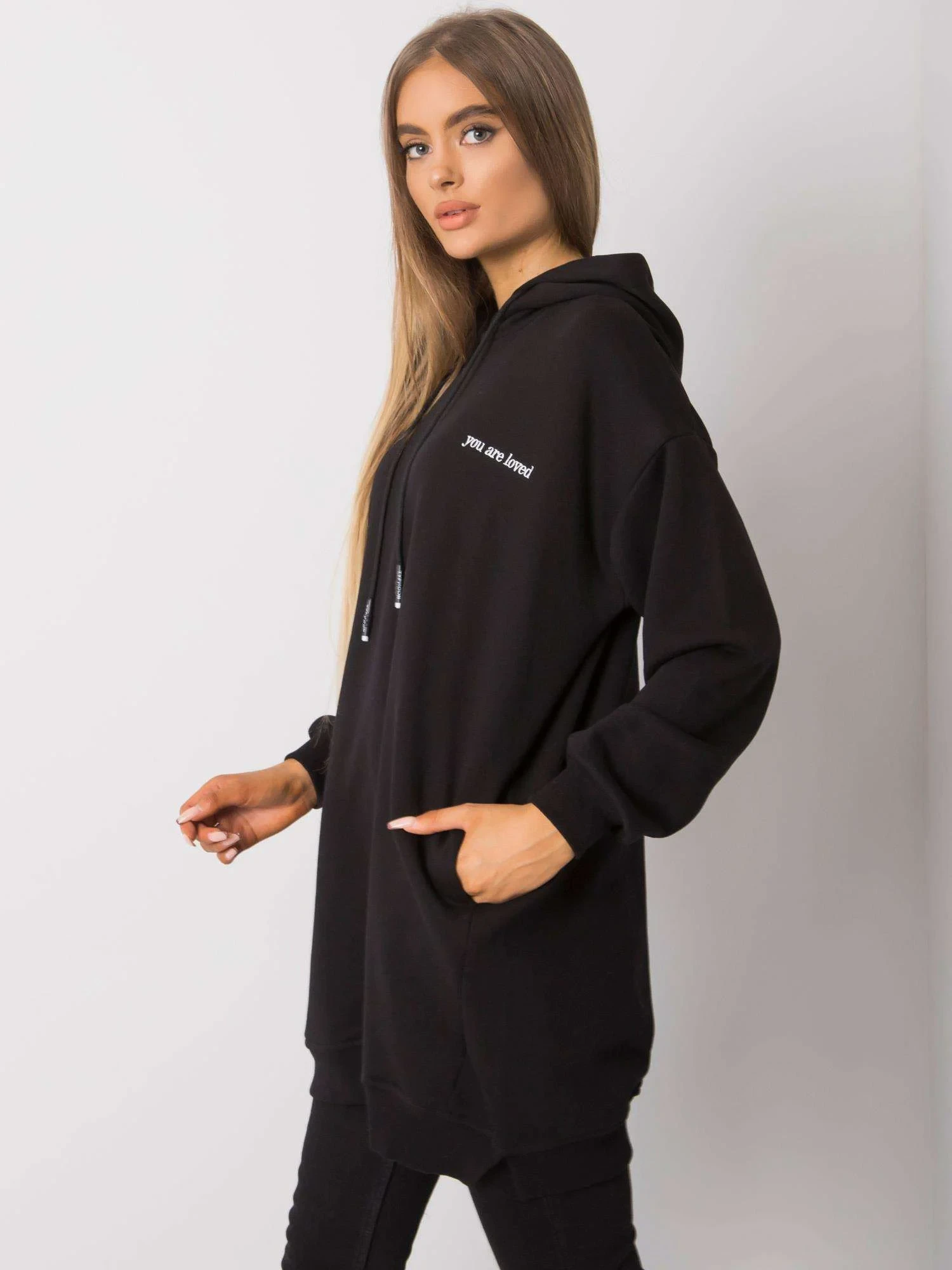 Černá dámská mikina s kapucí.