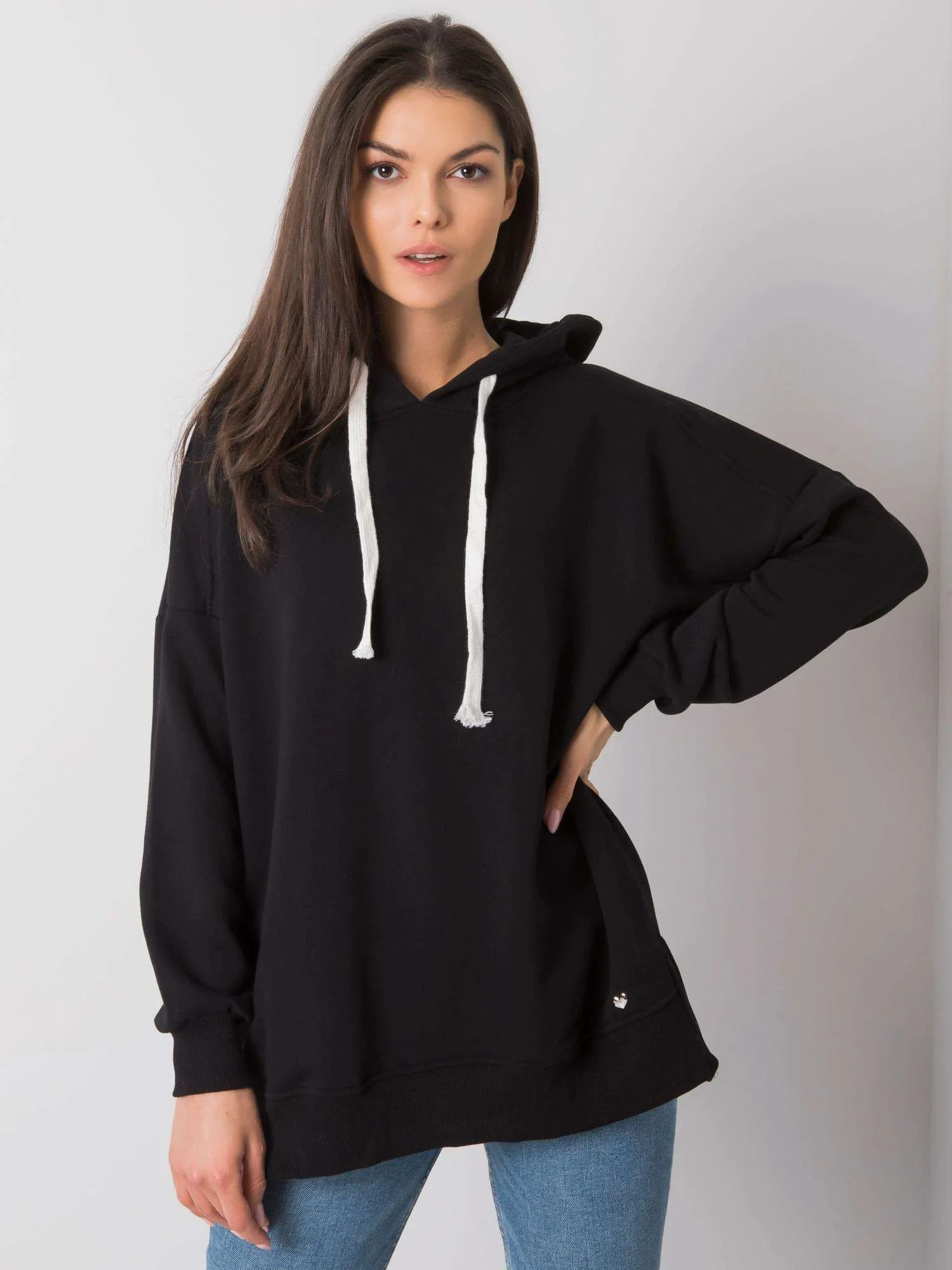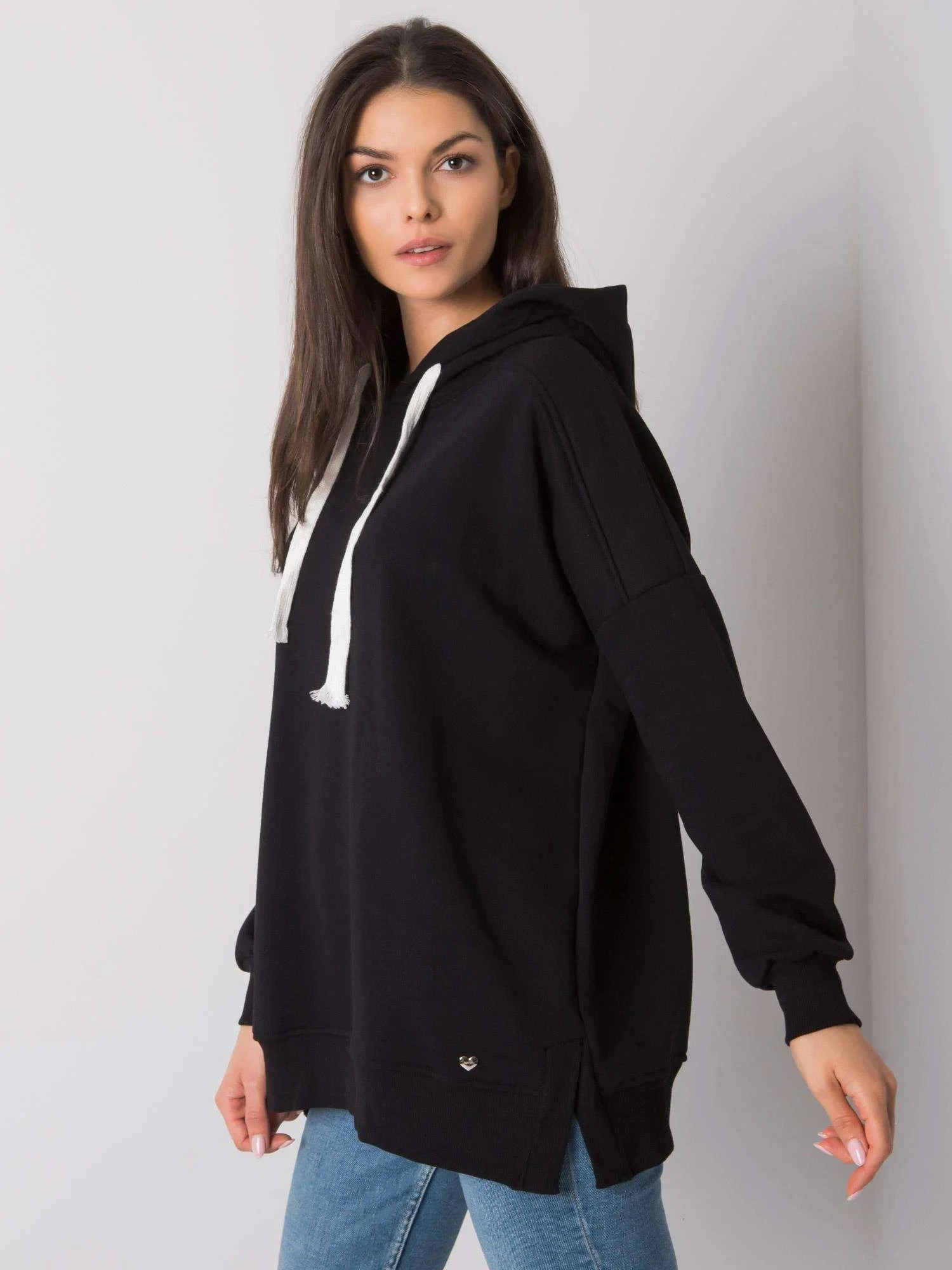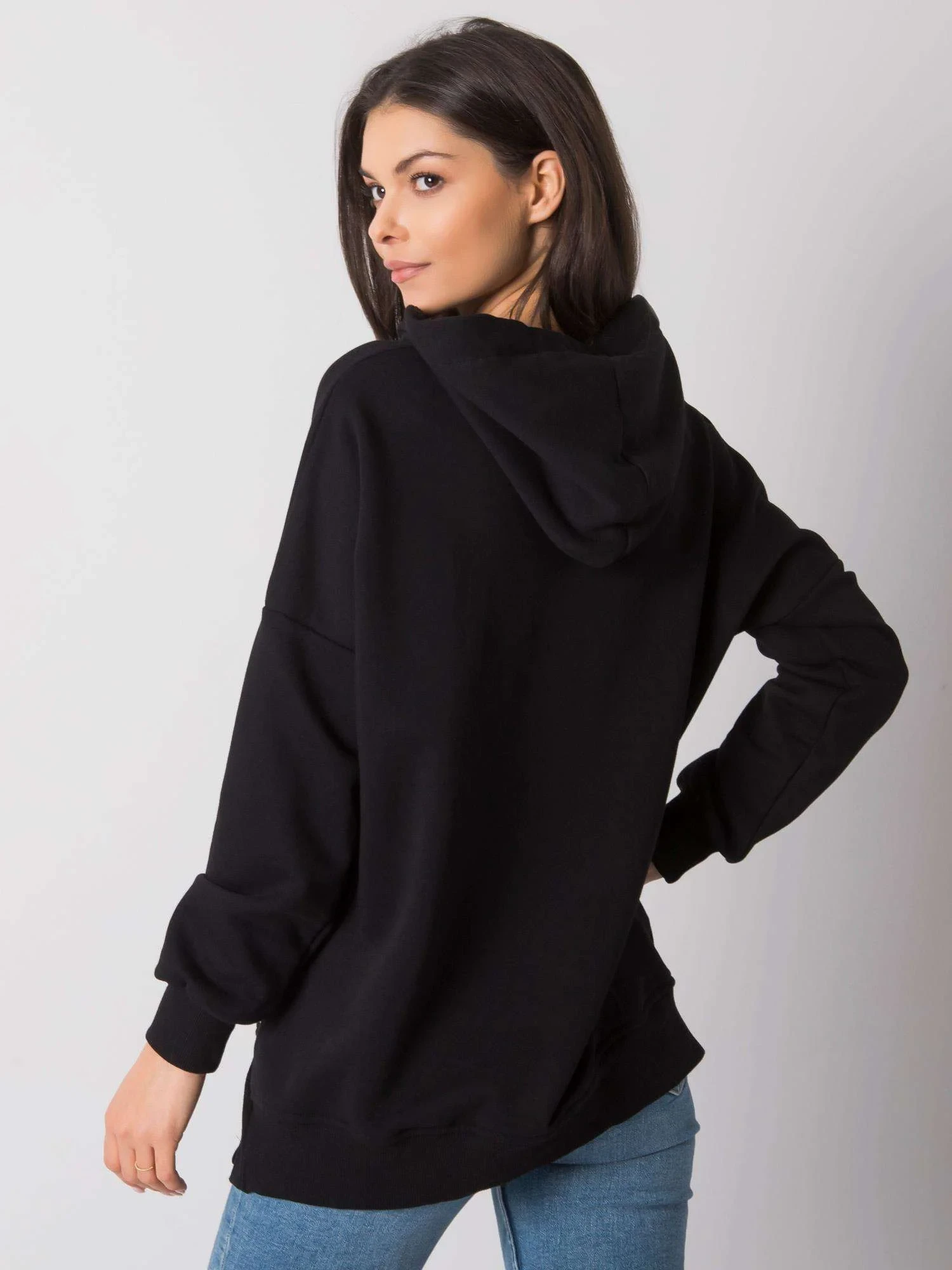 Černá hladká mikina s kapucí .