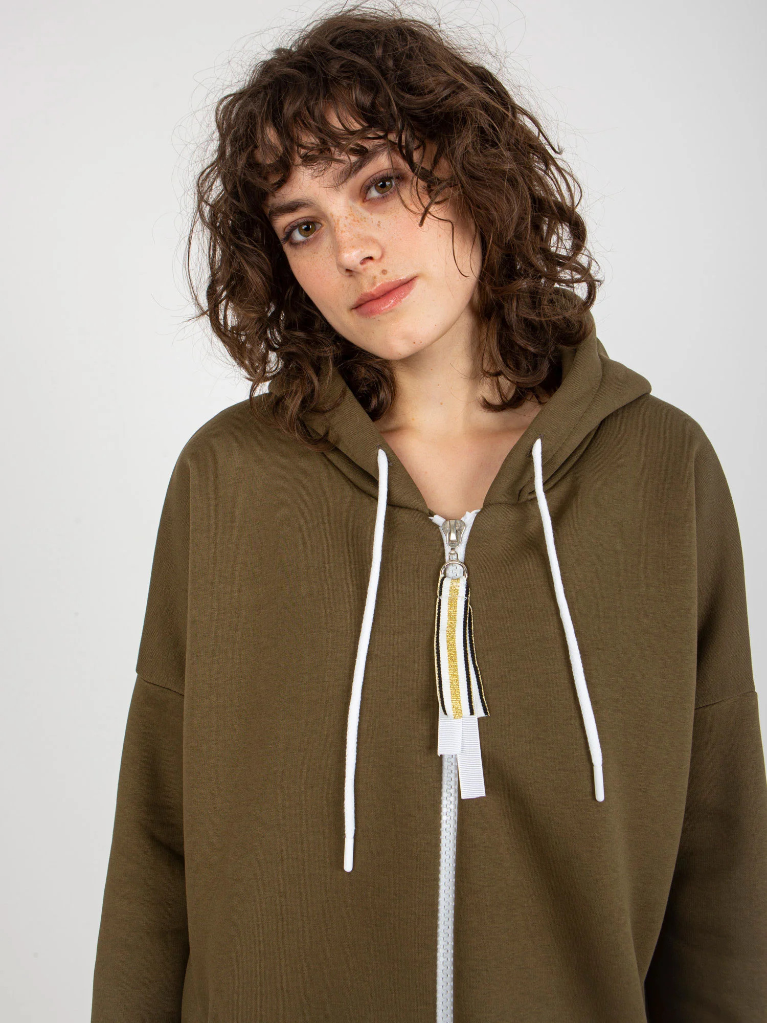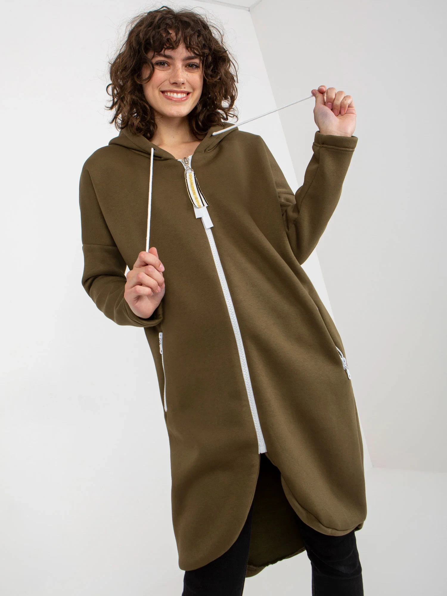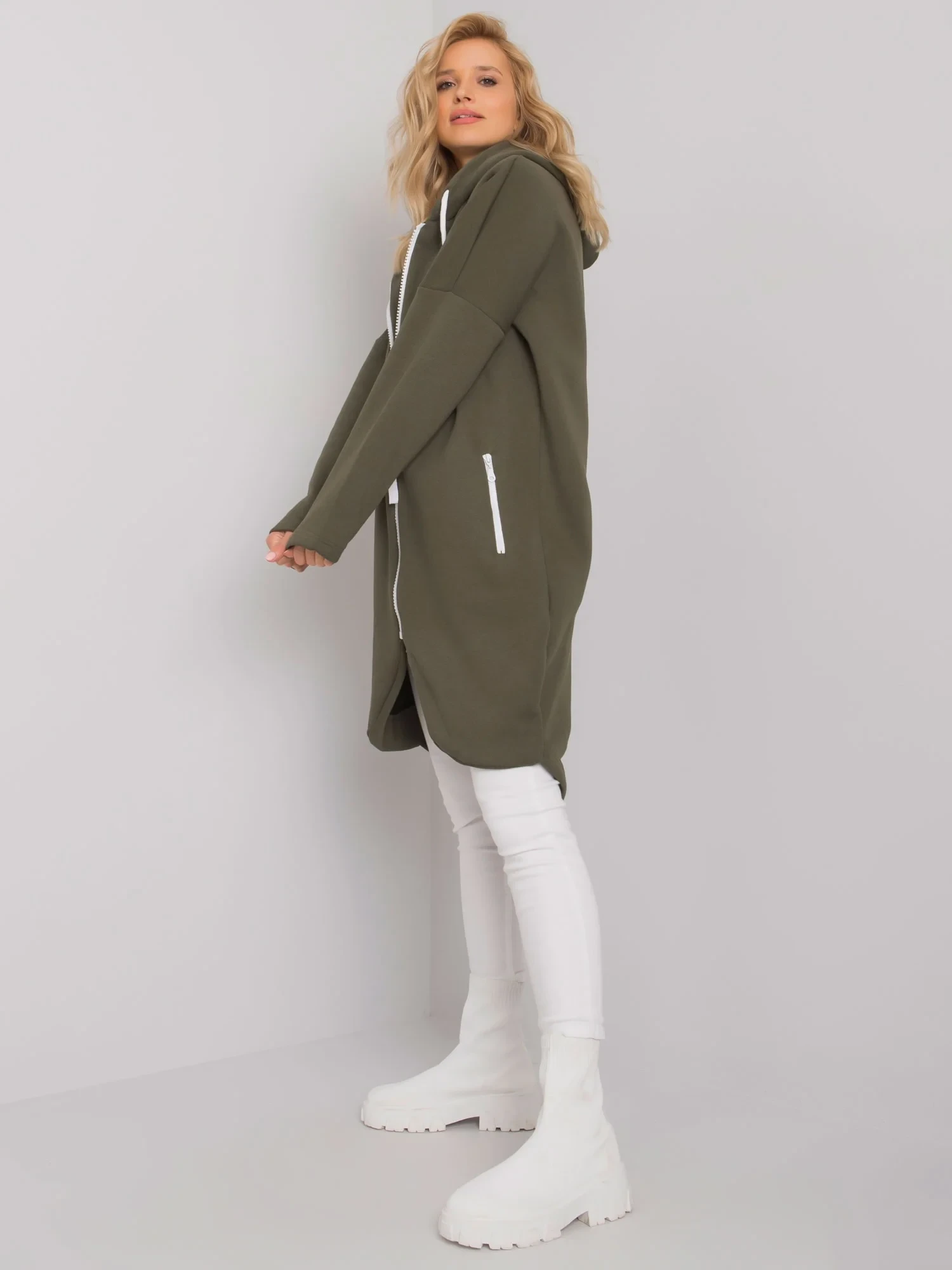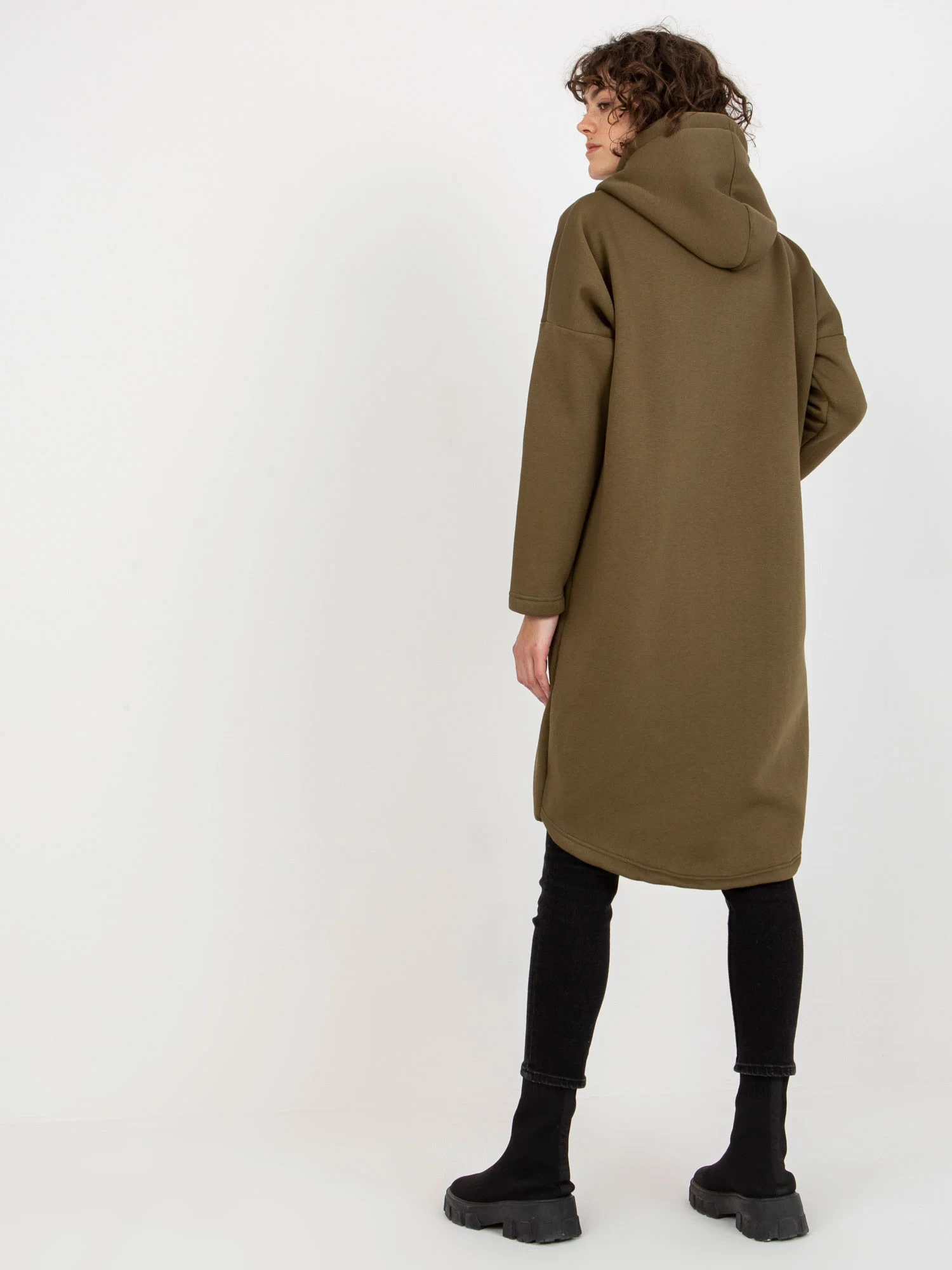Rozměry mikiny ve velikosti S/M měřené na plocho: šířka v podpaží - 67 cm, celková délka - 102 cm, délka rukávu - 55 cm.