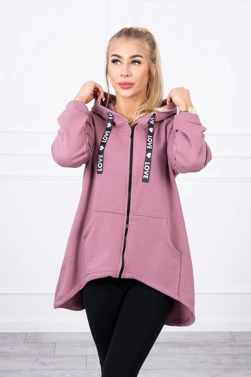 Představujeme vám mikinu s delšími zády a kapucí. Mikina má zapínání na zip a kapsy na přední straně. Díky silnějšímu materiálu je ideální pro chladnější večery nebo podzimní dny. Mikina je vyrobena z vysoce kvalitního materiálu. Velikost je univerzální a vyhovuje dámám, které nosí velikost S, M nebo L.