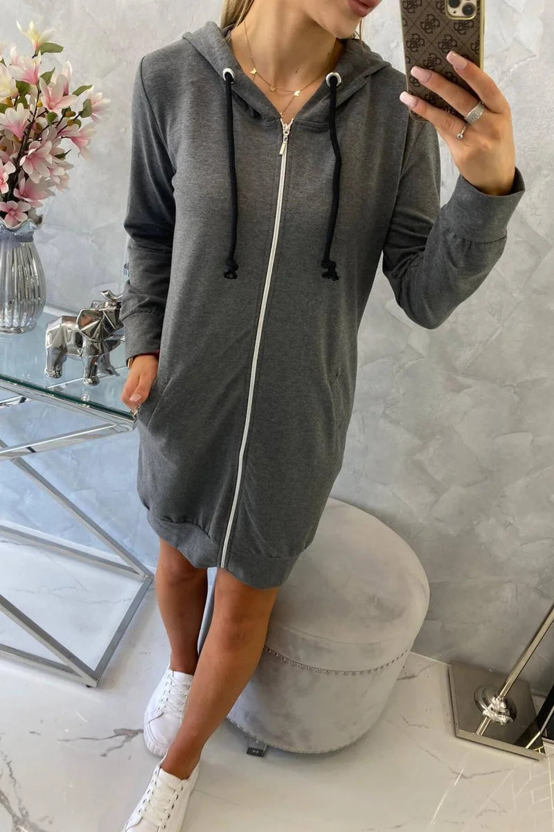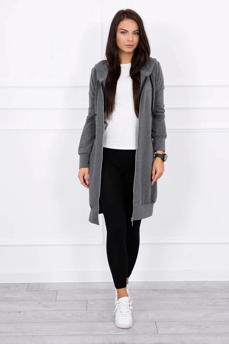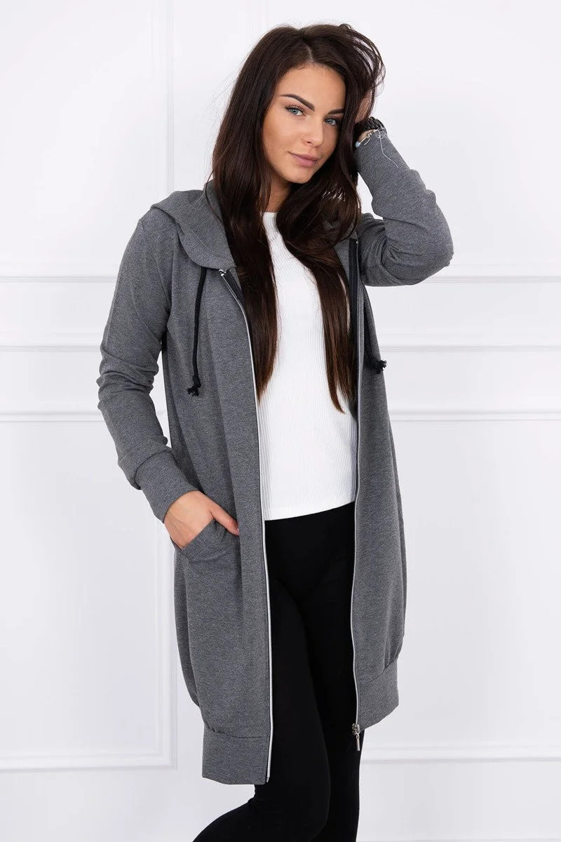 Představujeme vám pohodlnou dlouhou mikinu s kapucí. Mikina má zapínání na zip. Mikina je vyrobena z vysoce kvalitního materiálu. Velikost je univerzální a vyhovuje dámám, které nosí velikost S, M nebo L.