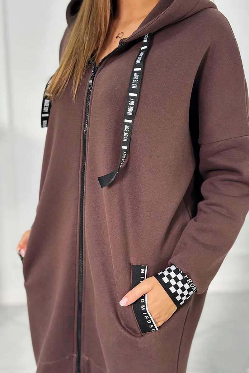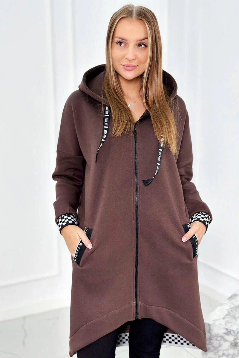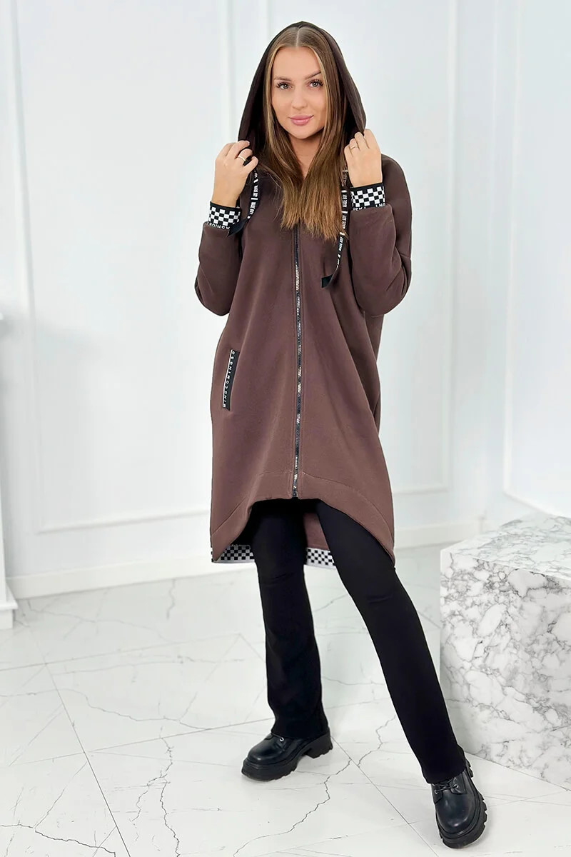 Mikina s kapucí na zip hnědý