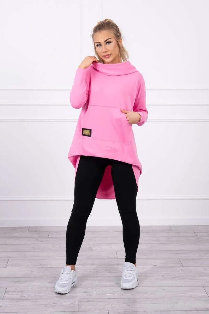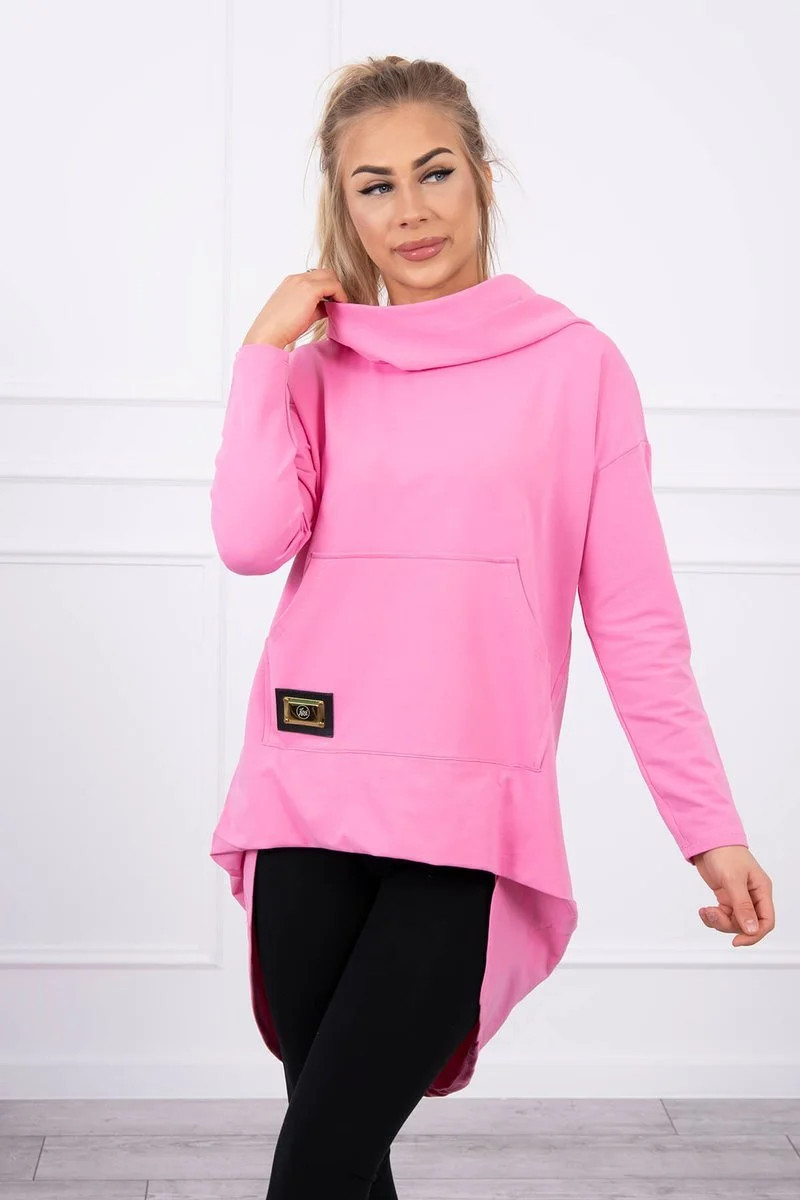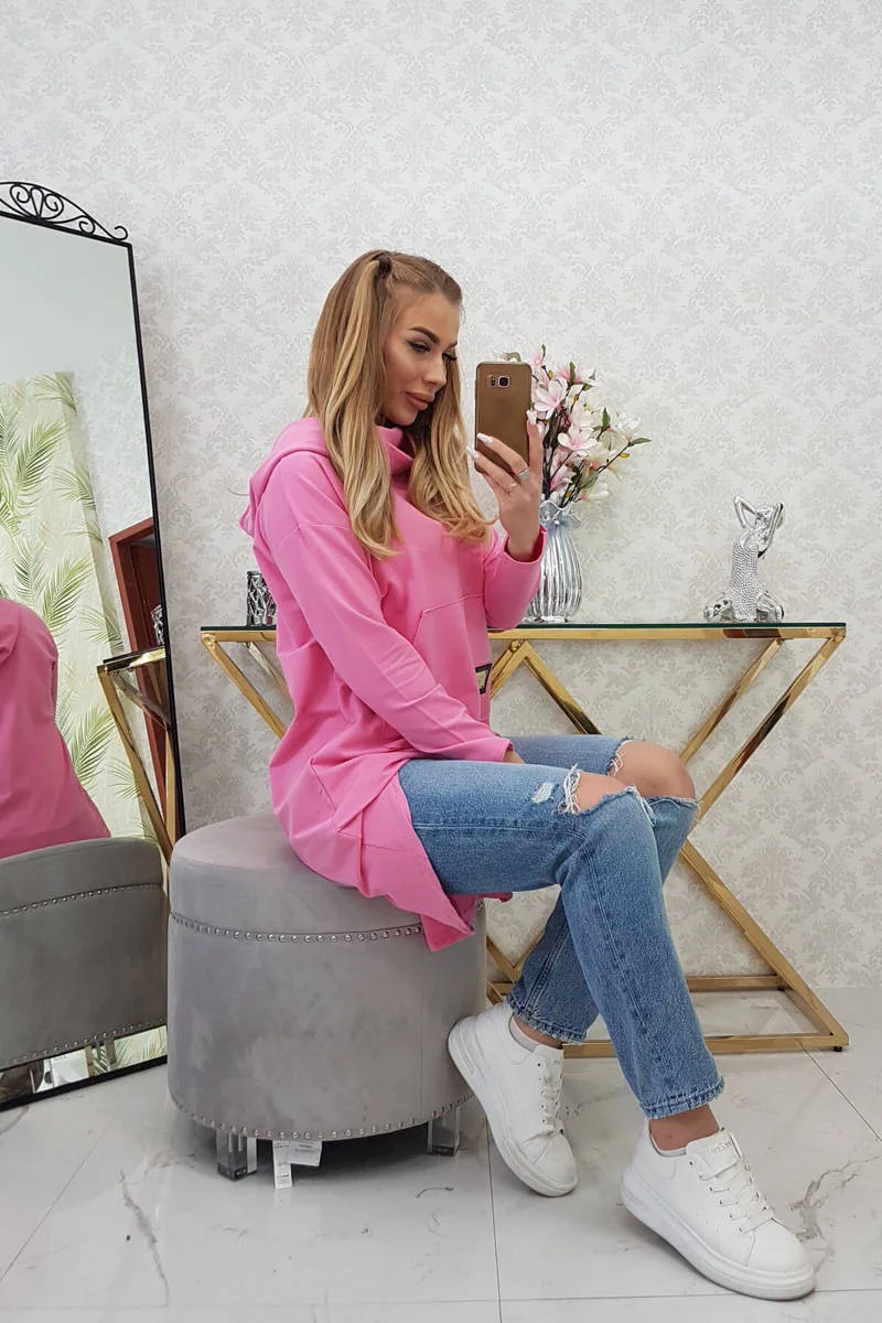 Mikina s kapucí s dlouhými zády růžová