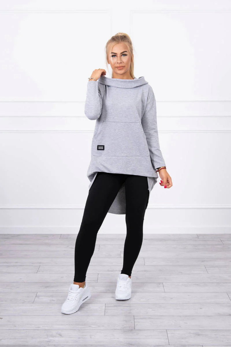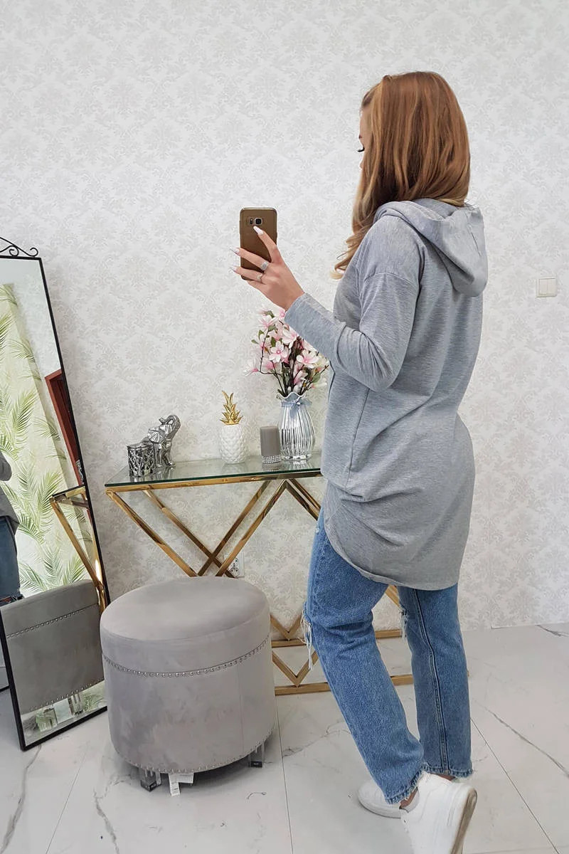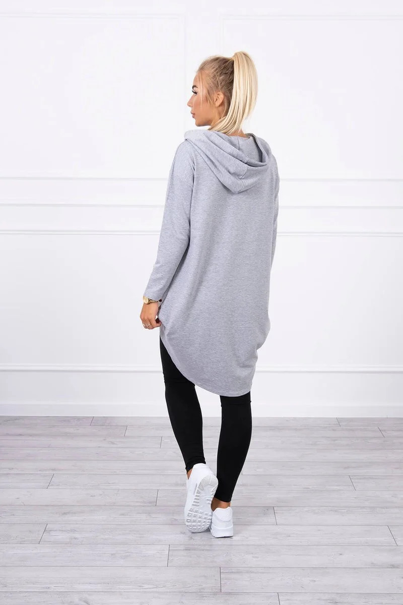 Mikina s kapucí s dlouhými zády šedá