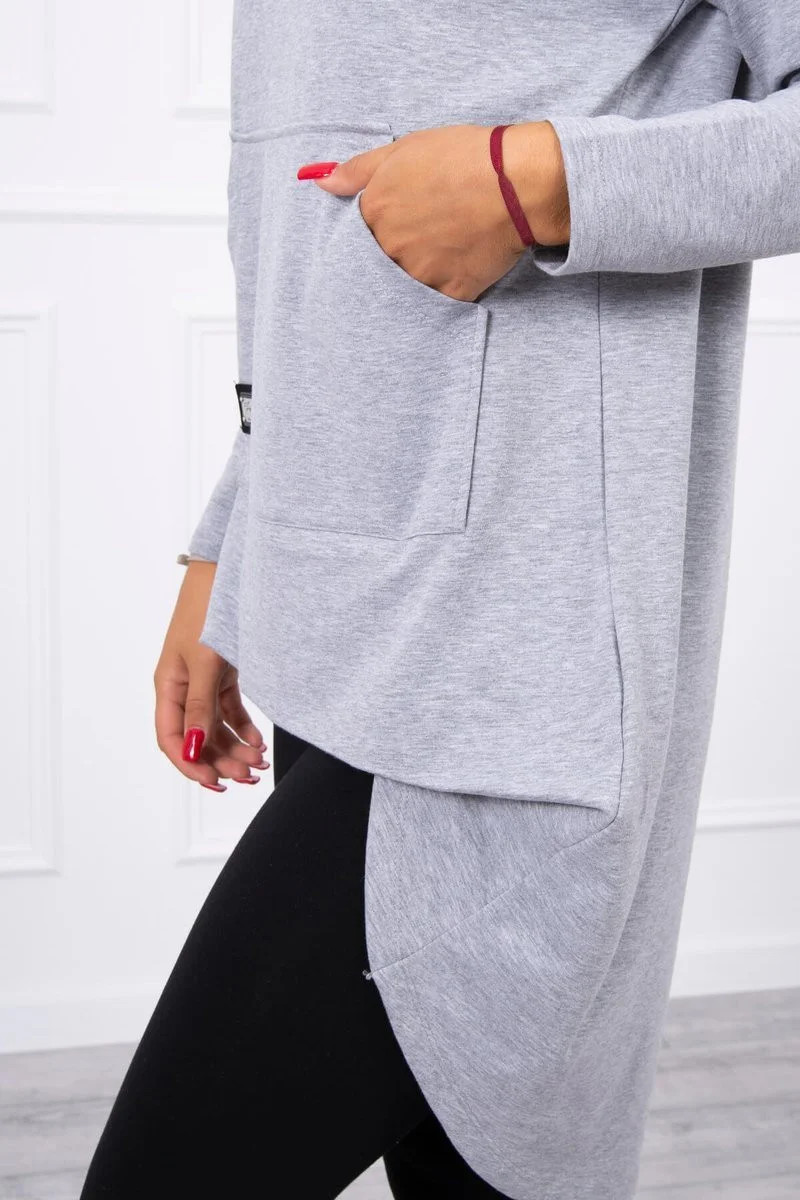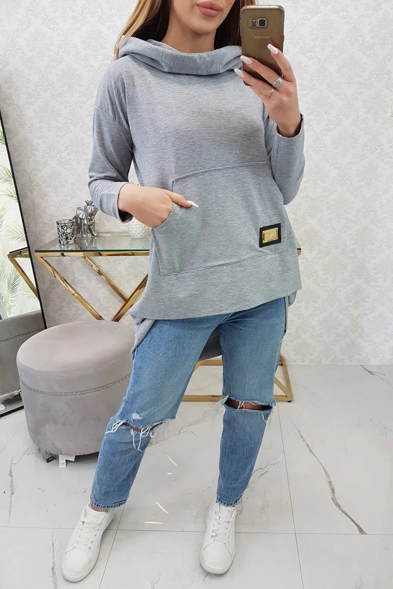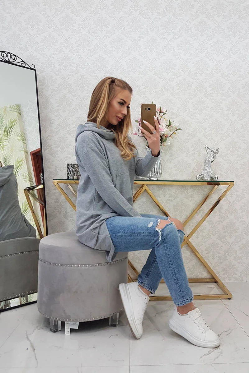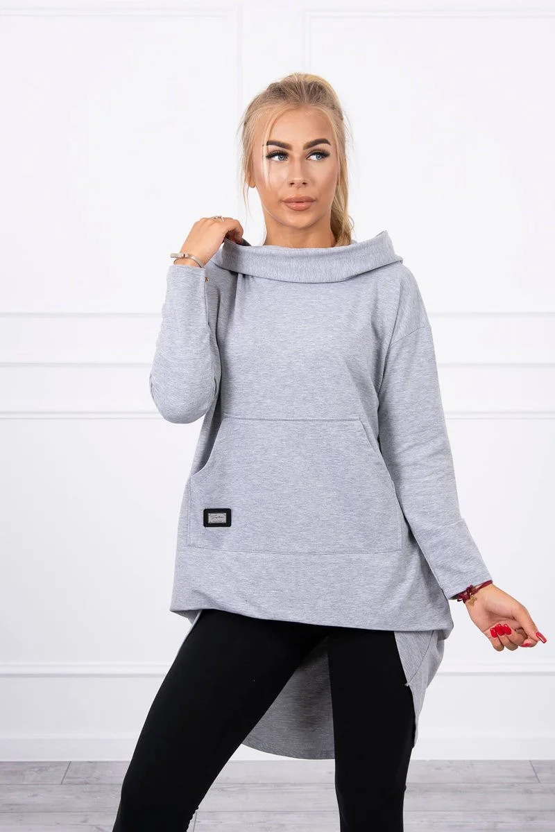 Mikina s kapucí s dlouhými zády šedá
