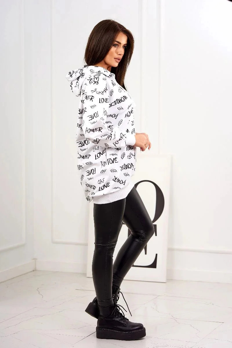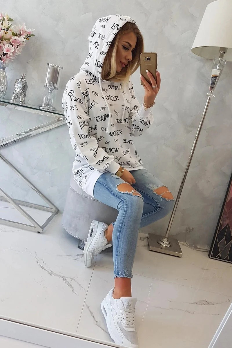 Prezentujemy Państwu wygodną bluzę. Bluza z kapturem oraz kieszeniami. Bluza z nadrukiem. Bluza wykonana jest z wysokiej jakości materiału. Rozmiar jest uniwersalny i będzie odpowiedni dla Pań noszących rozmiar M, L lub XL.