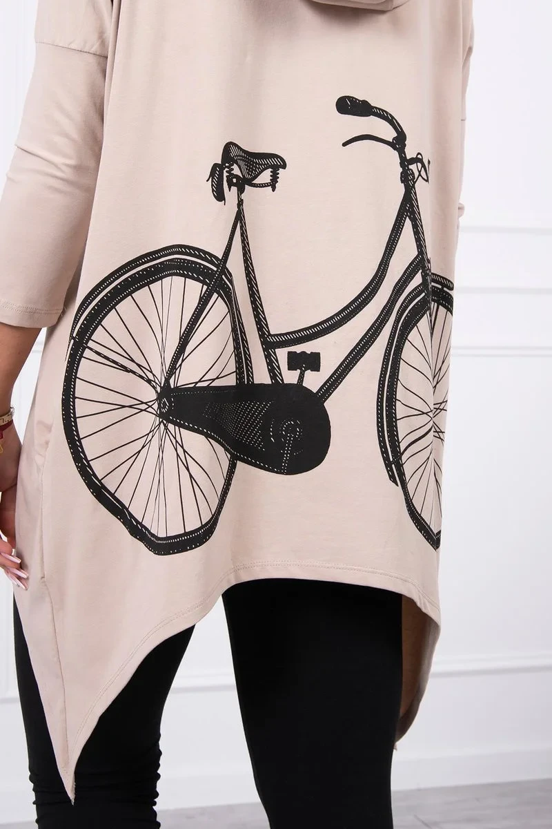 Mikina s potiskem jízdního kola béžová