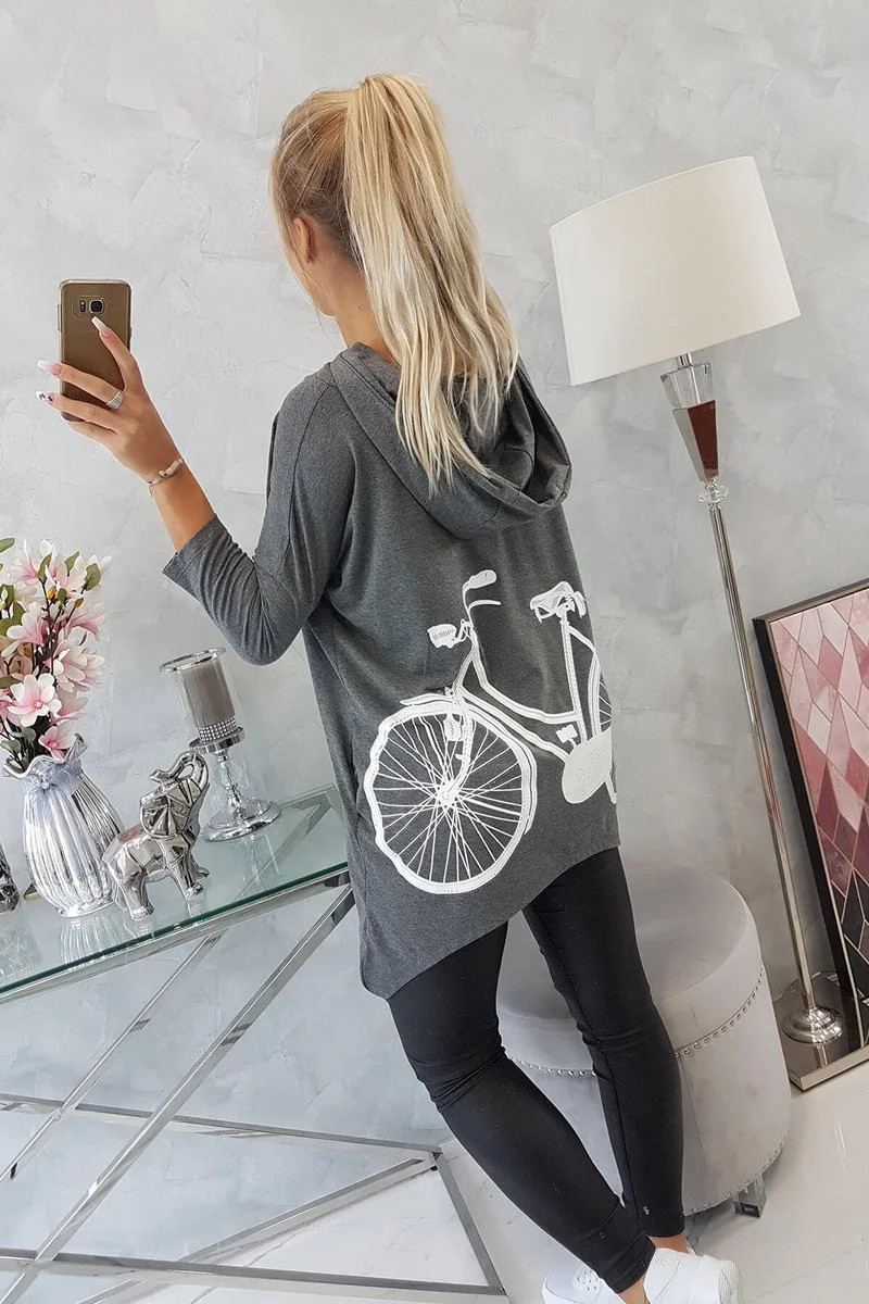 Představujeme vám módní mikinu. Mikina má na zádech potisk s motivem jízdního kola. Mikina s kapucí a kapsami. Mikina je vyrobena z vysoce kvalitního materiálu. Velikost je univerzální a vyhovuje dámským velikostem S, M, L.