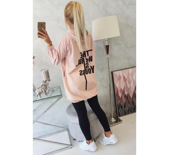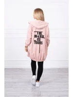 Mikina s potiskem "The world is yours" tmavě pudrově růžová
