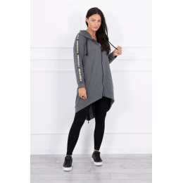 Představujeme vám pohodlnou dlouhou mikinu s kapucí. Mikina má zapínání na zip a další zip na zádech. Kapsy na bocích a dvě ozdoby na zadní straně. Mikina má našité stuhy s nápisem fashion. Mikina je vyrobena z vysoce kvalitního materiálu. Velikost je univerzální a vyhovuje dámám, které nosí velikost S, M nebo L.