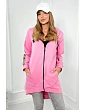 Představujeme vám pohodlnou dlouhou mikinu s kapucí. Mikina má zapínání na zip a další zip na zádech. Kapsy na bocích a dvě ozdoby na zadní straně. Mikina má našité stuhy s nápisem fashion. Mikina je vyrobena z vysoce kvalitního materiálu. Velikost je univerzální a vyhovuje dámám, které nosí velikost S, M nebo L.