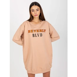 Béžová volná mikina s potiskem a aplikací .