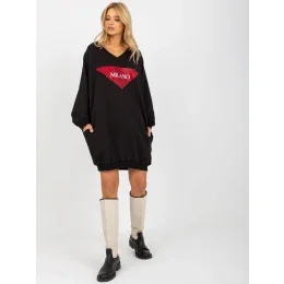 Černá dlouhá oversize mikina s kamínkovou aplikací .
